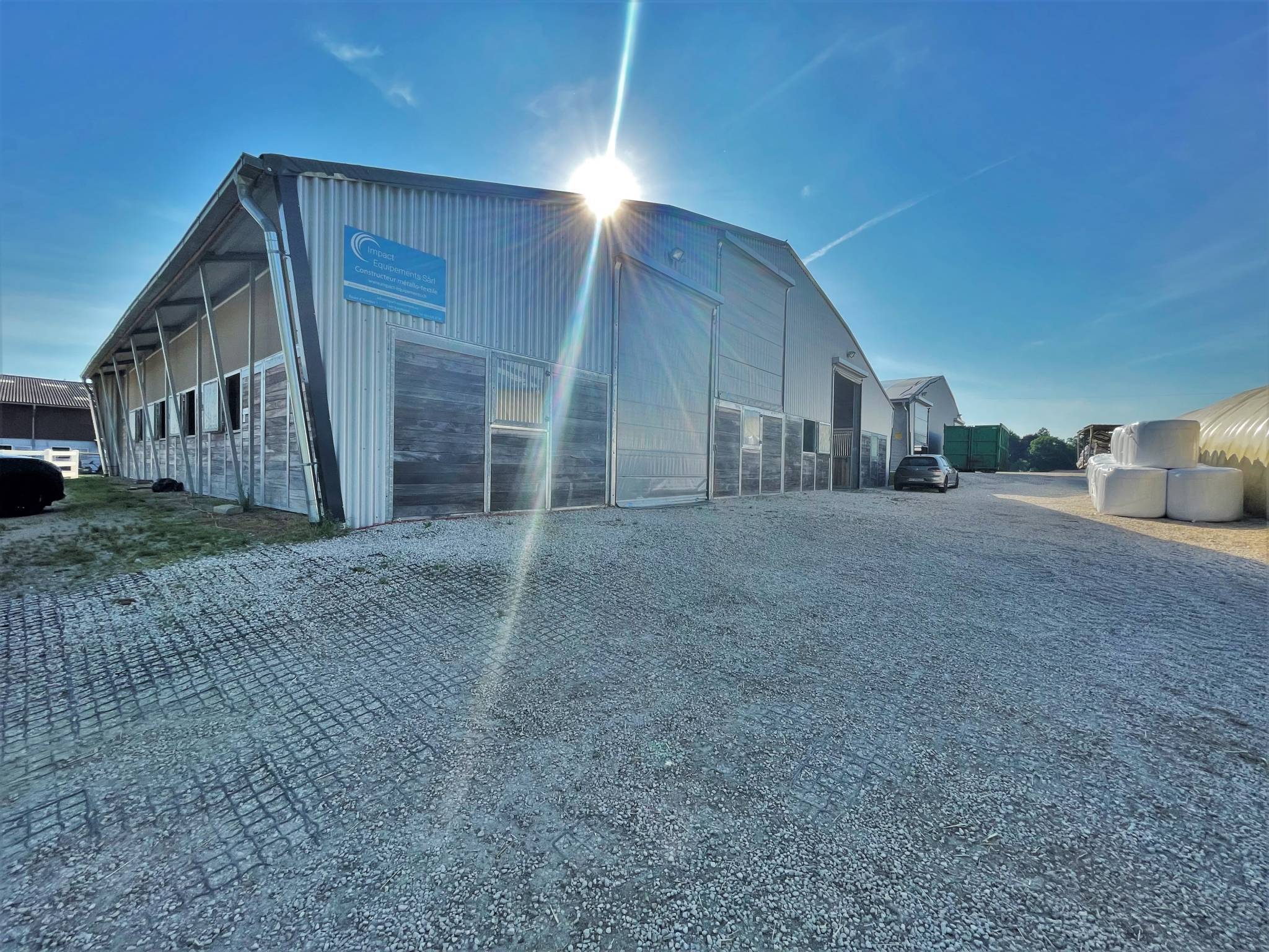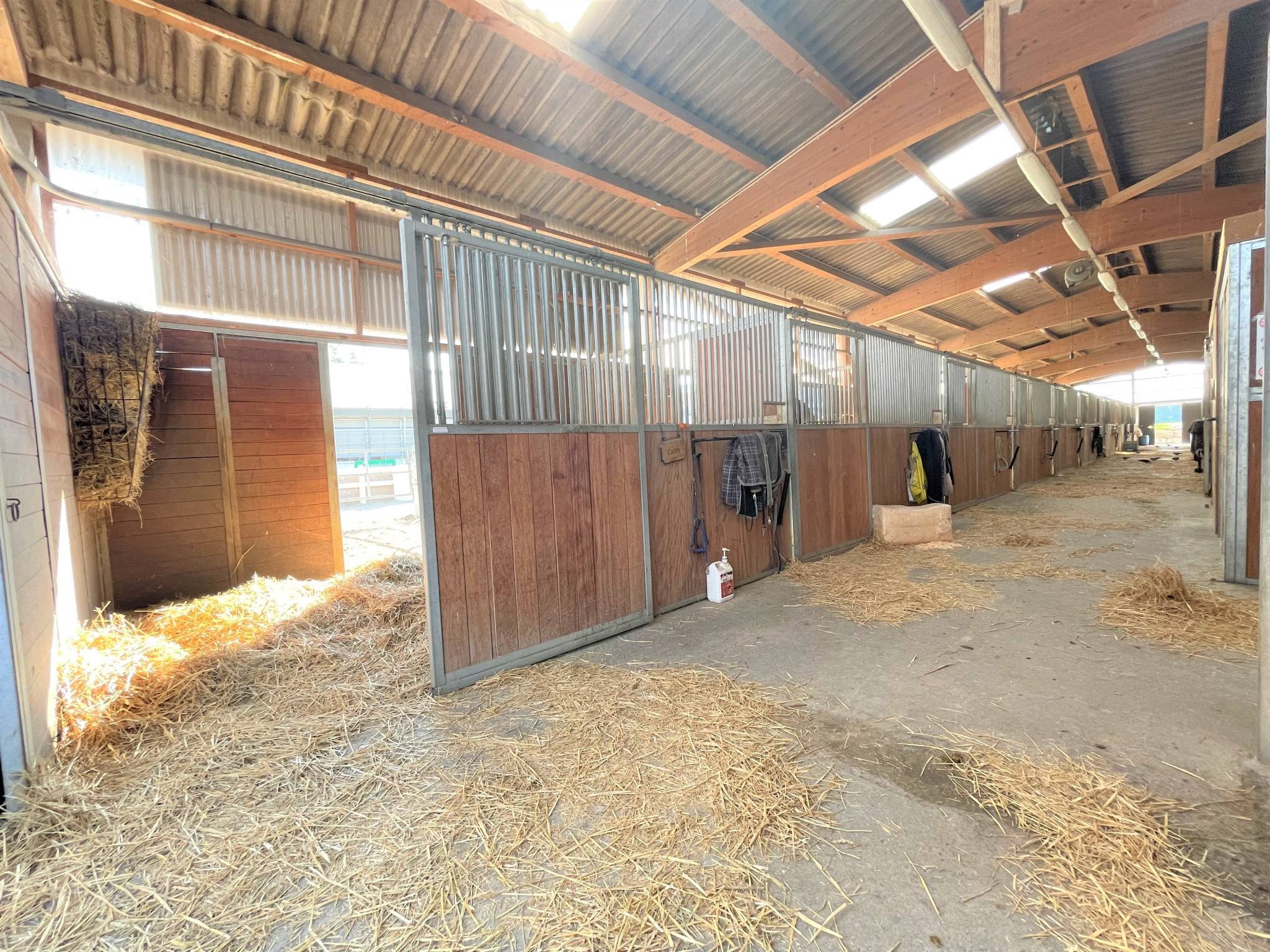 Ecurie 1 2 couloirs 11 boxes avec sellerie intégrée 2 douches Stockage du fourrage au-dessus des boxes Portes avec ouverture automatisée à l’extrémité des couloirs