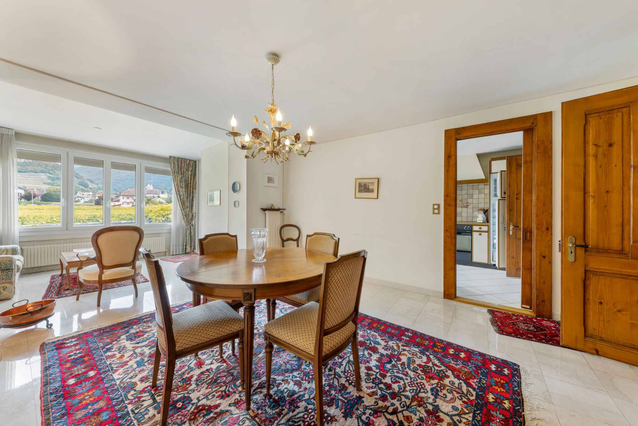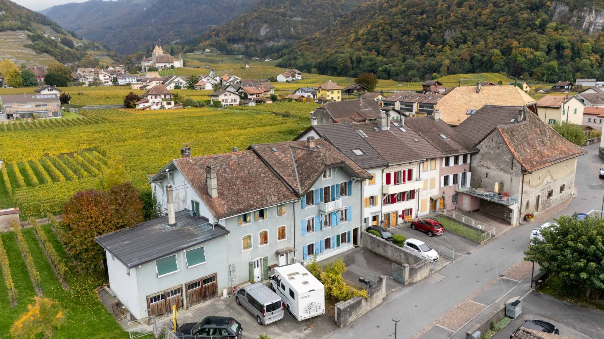 La propriété offre une vue sublime sur le château d’Aigle et les montagnes environnantes, dans un quartier calme et recherché.