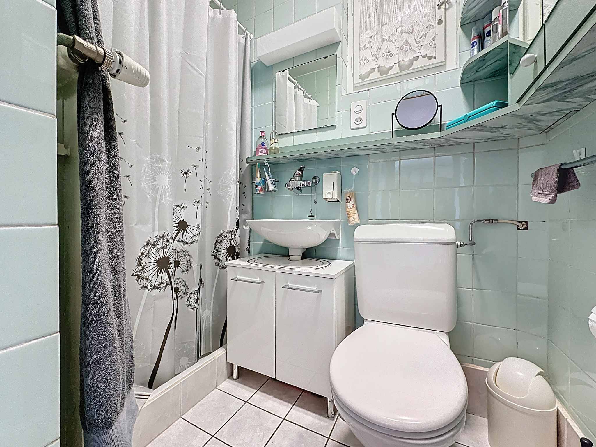 Vous êtes accueilli par un sas d’entrée menant à un corridor qui dessert les différentes pièces de vie. Le séjour lumineux dispose d’un coin salle à manger agrémenté d’armoires murales. La cuisine séparée avec coin manger offre offre un accès direct au premier balcon. Une salle de douches avec WC complète cet étage.