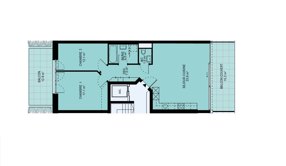 Cet appartement de 3.5 pièces se trouve au deuxième étage du bâtiment B1 Centre.