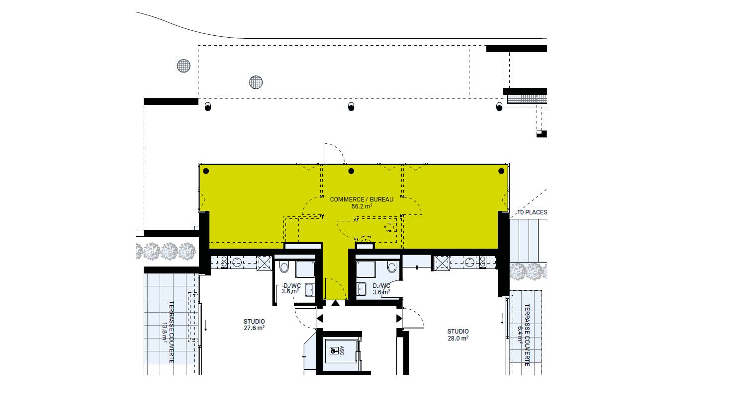 Cette surface commerciale de 56m2 est idéalement située sur la Route de Lausanne. Elle bénéficie d'une très grande vitrine.