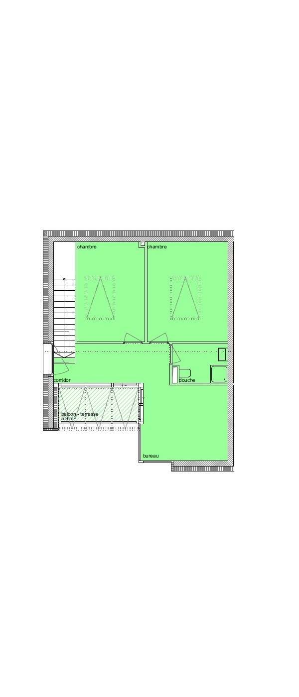 Au premier étage, un hall d'entrée avec armoires murales, une cuisine ouverte sur le séjour/salle à manger avec accès au balcon couvert. Une chambres à coucher ainsi qu'une salle de bains/WC. Au deuxième étage, un corridor dessert un bureau, deux chambres à coucher ainsi qu'une salle douche/WC.
