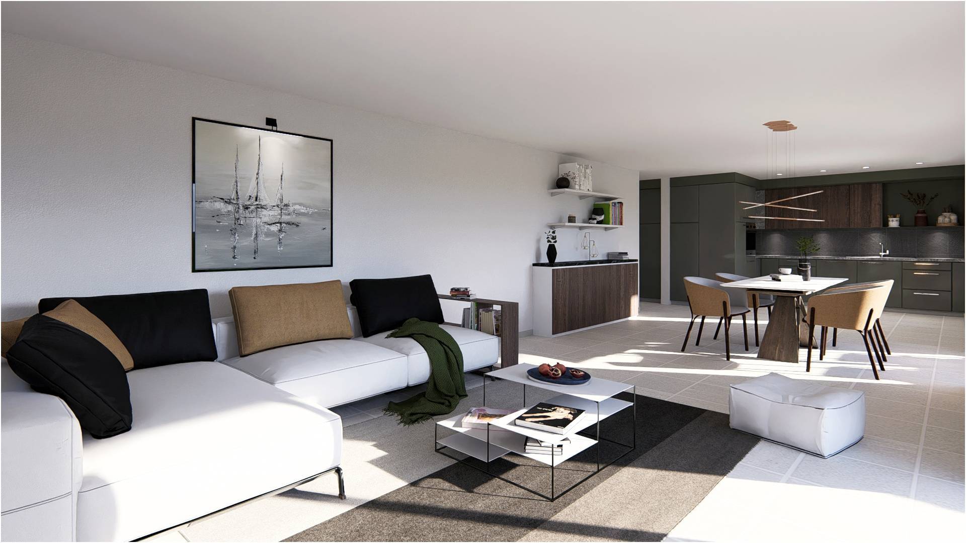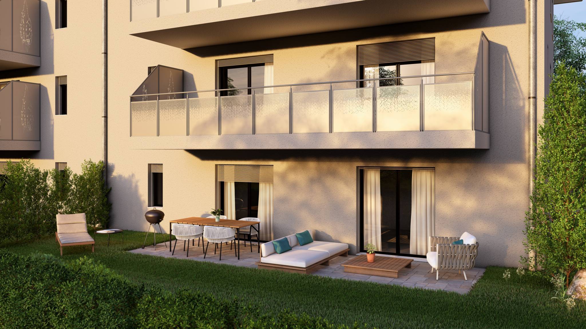Le projet prévoit des appartements de 4.5 pièces avec vaste balcon/terrasse ou jardin qui sont distribués sur des surfaces allant de 107 m2 à 155 m2.