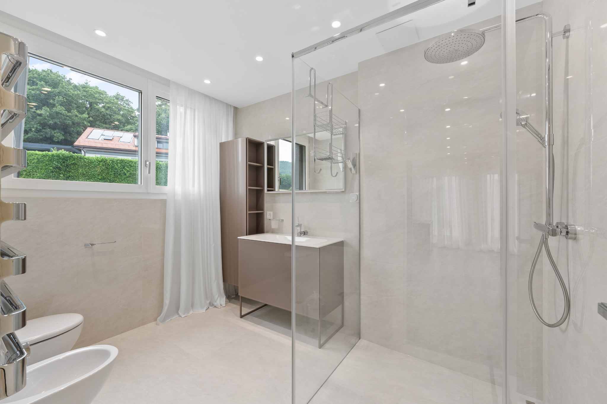 Dotée de 4 places de parc couverte ainsi que de 4 places extérieures cette propriété est à la fois élégante et fonctionnelle, conçue pour une vie paisible, luxueuse et intimiste.
