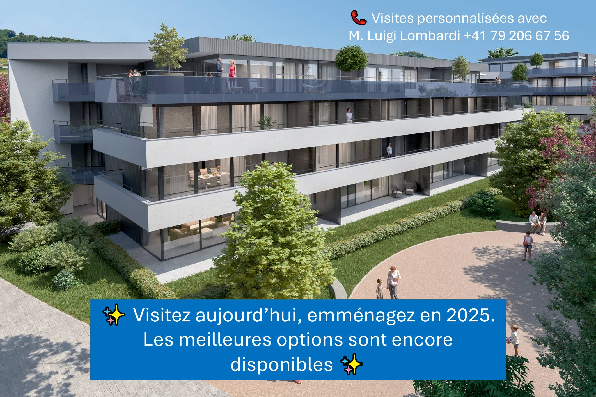Label MINERGIE-P éco, architecture soignée et environnement paisible : un lieu de vie idéal, que ce soit pour y habiter ou investir.