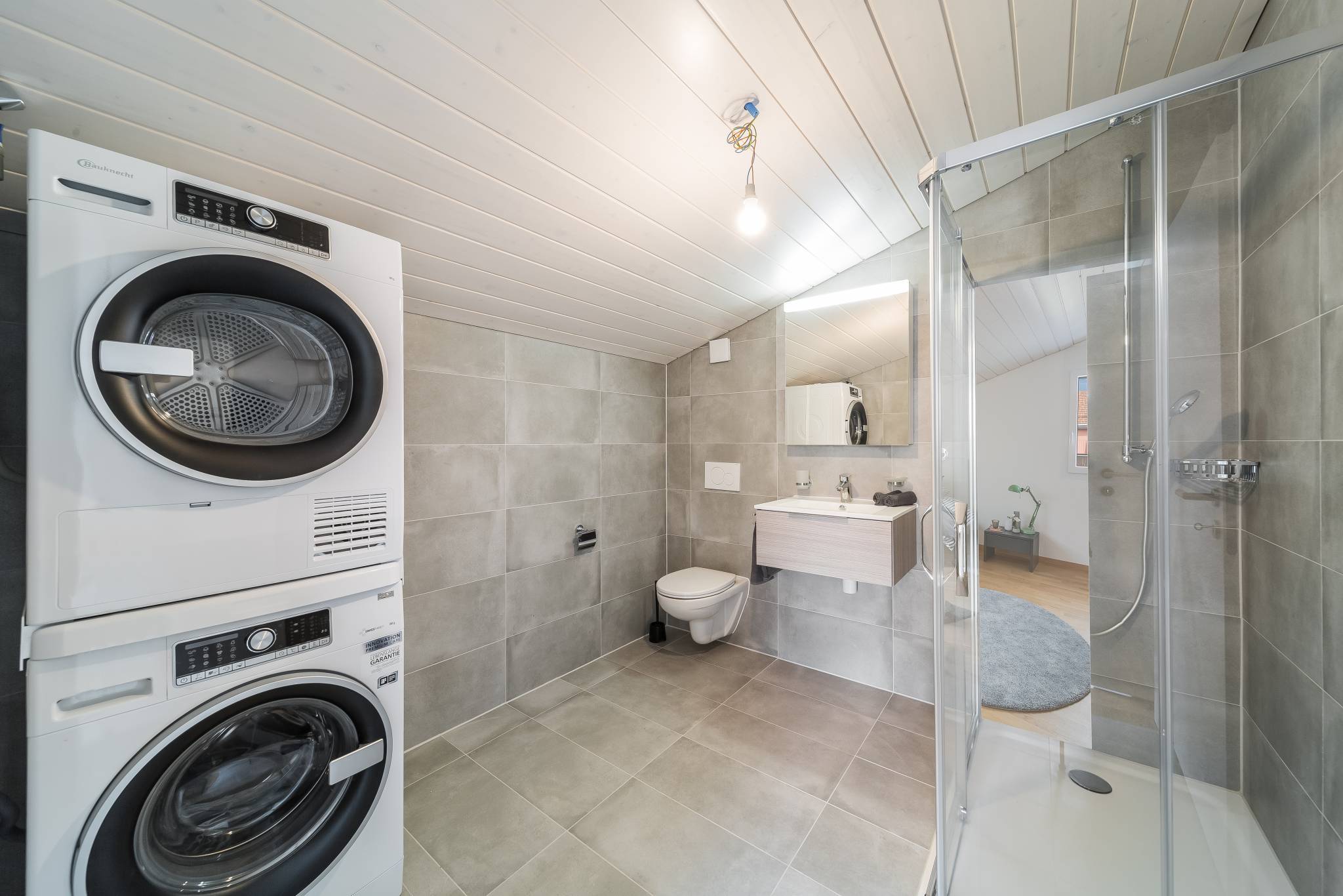 - Salle de douche/WC/lavabo avec colonne de lavage-séchage