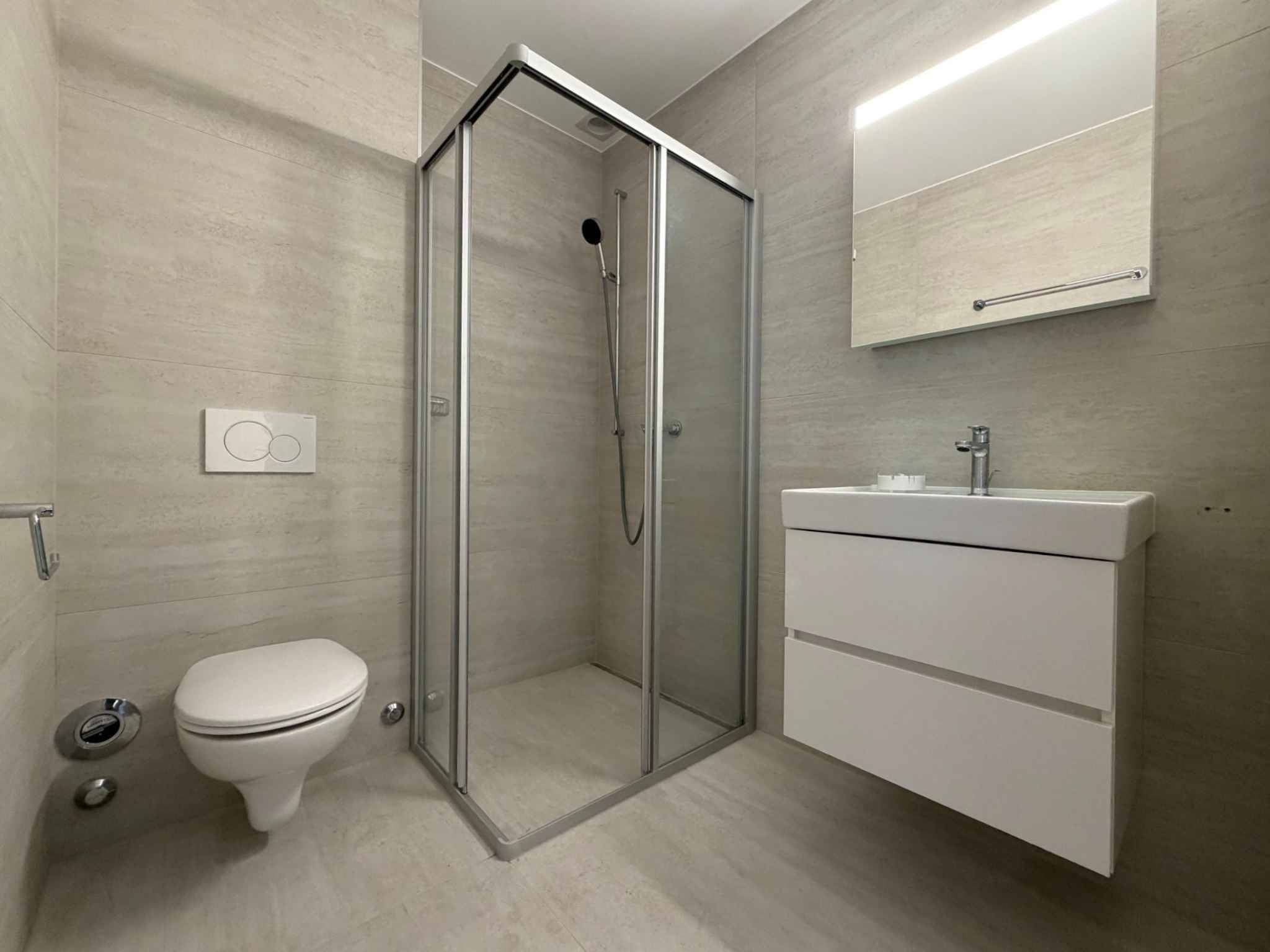 Un grand espace de vie de 24m2 avec cuisine et accès à une terrasse couverte et à un jardin. Une salle de douches avec WC. Une cave complète ce bien.