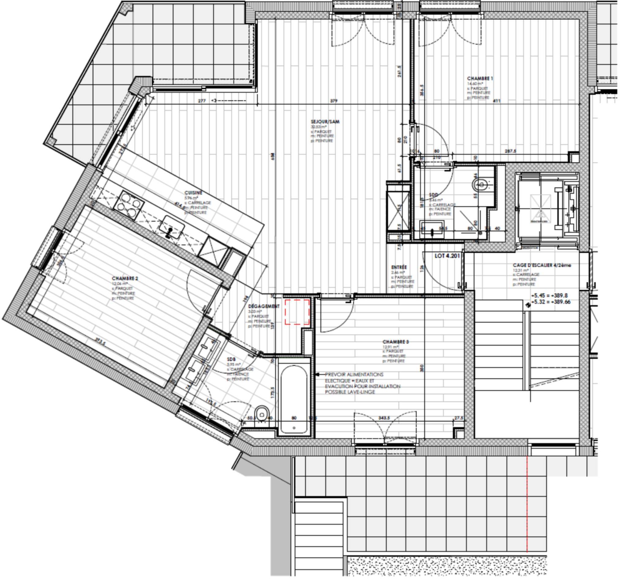Le lot No 43 ici proposé est un magnifique et spacieux appartement de 4.5 Pièces avec grand balcon et terrasse ouverte sur l'Atrium pour une chambre à coucher, au 2ème étage du bâtiment 4 (rez supérieur côté Atrium façade Sud). Il propose une surface habitable de 99 m2 hab. ainsi qu'un balcon de 10.4 m2 et une grande terrasse de 16 m2 orientée Sud.