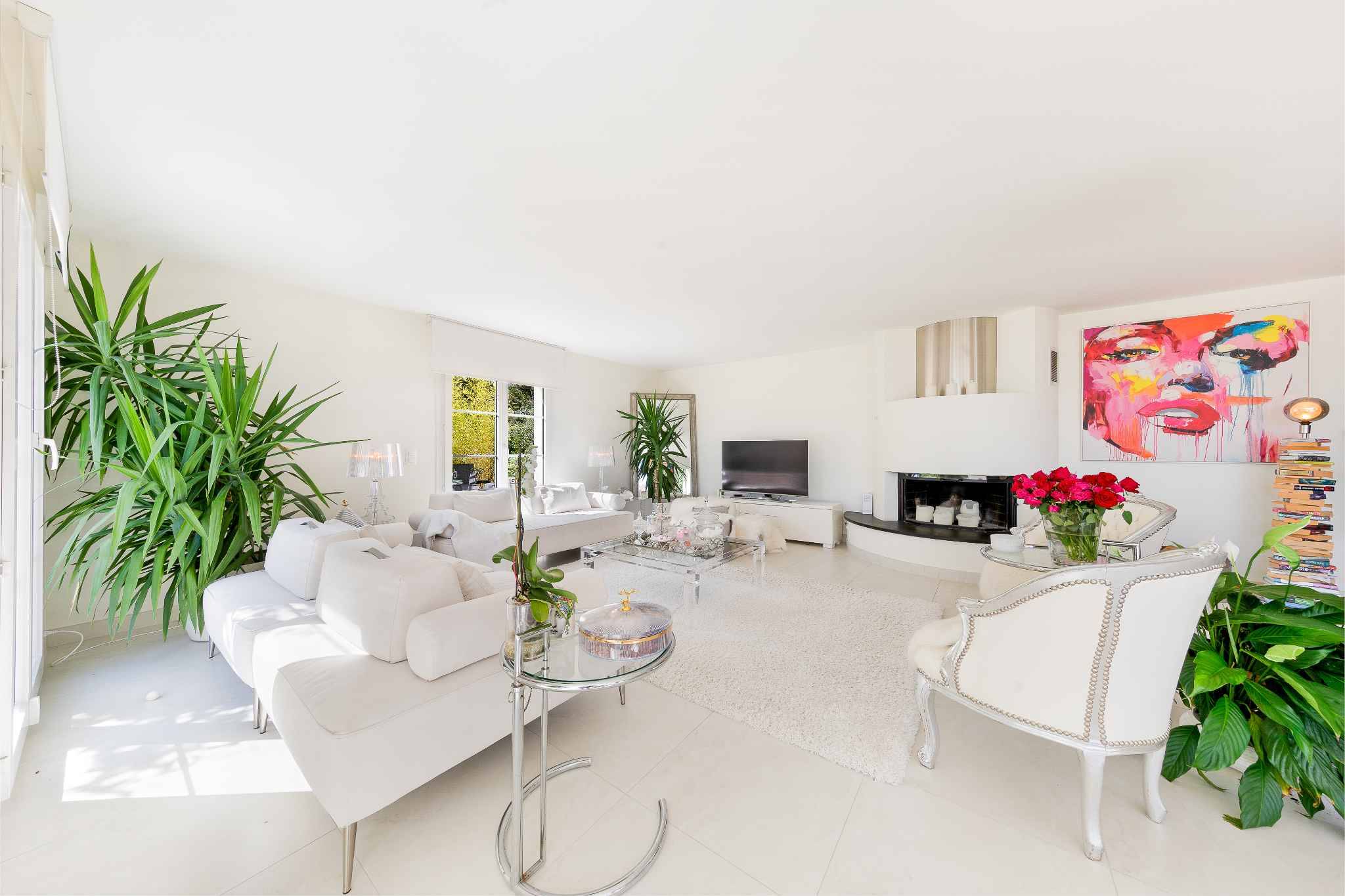 Grand séjour lumineux avec cheminée, accès direct à la terrasse et à la piscine