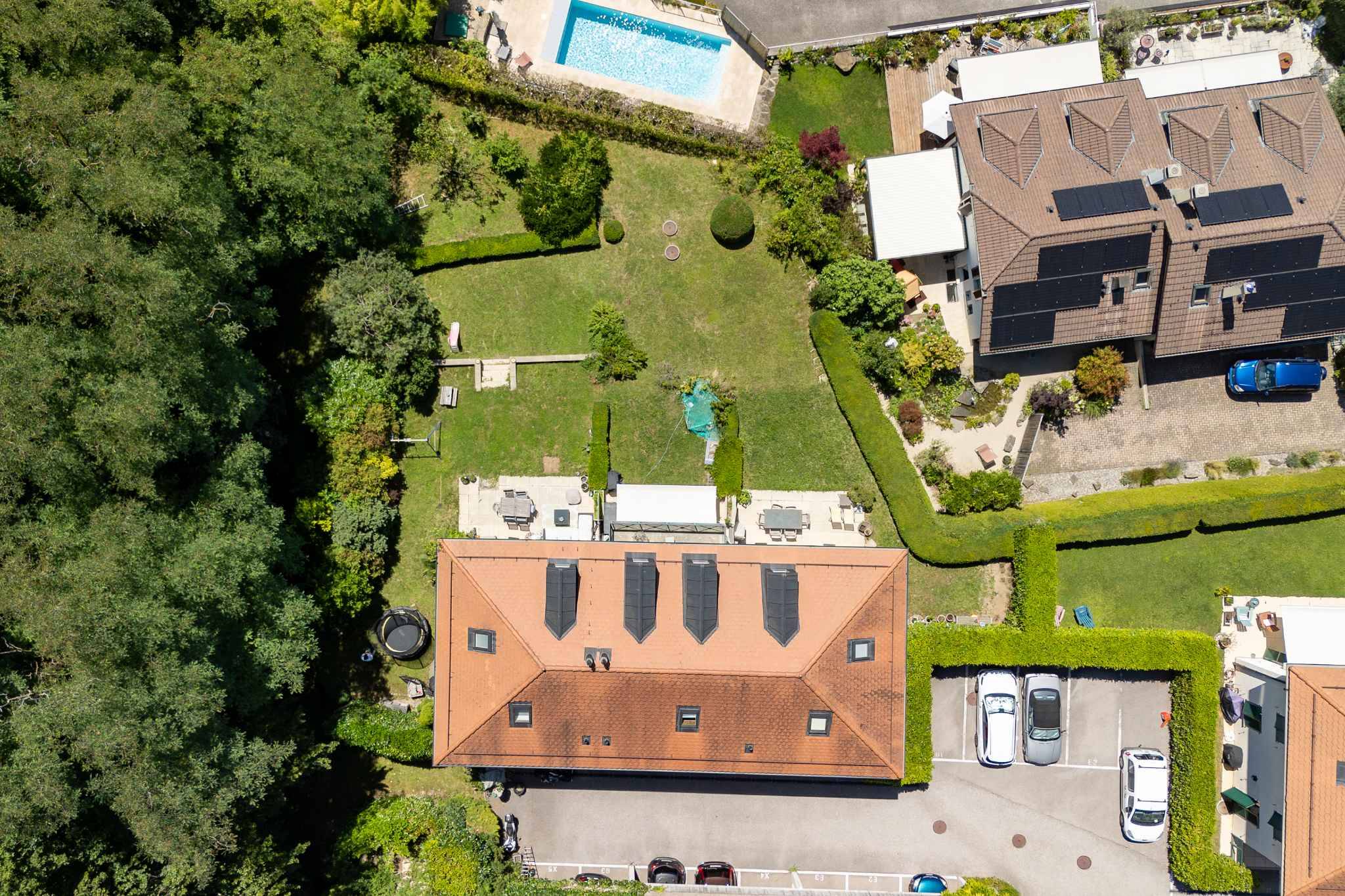 Érigée sur une parcelle de 1'162 m², comprenant 3 villas, cette propriété séduit par son architecture classique, son élégance discrète et son cadre soigneusement entretenu. Rénovée avec soin en 2016, la villa se présente en bon état, prête à accueillir une famille.