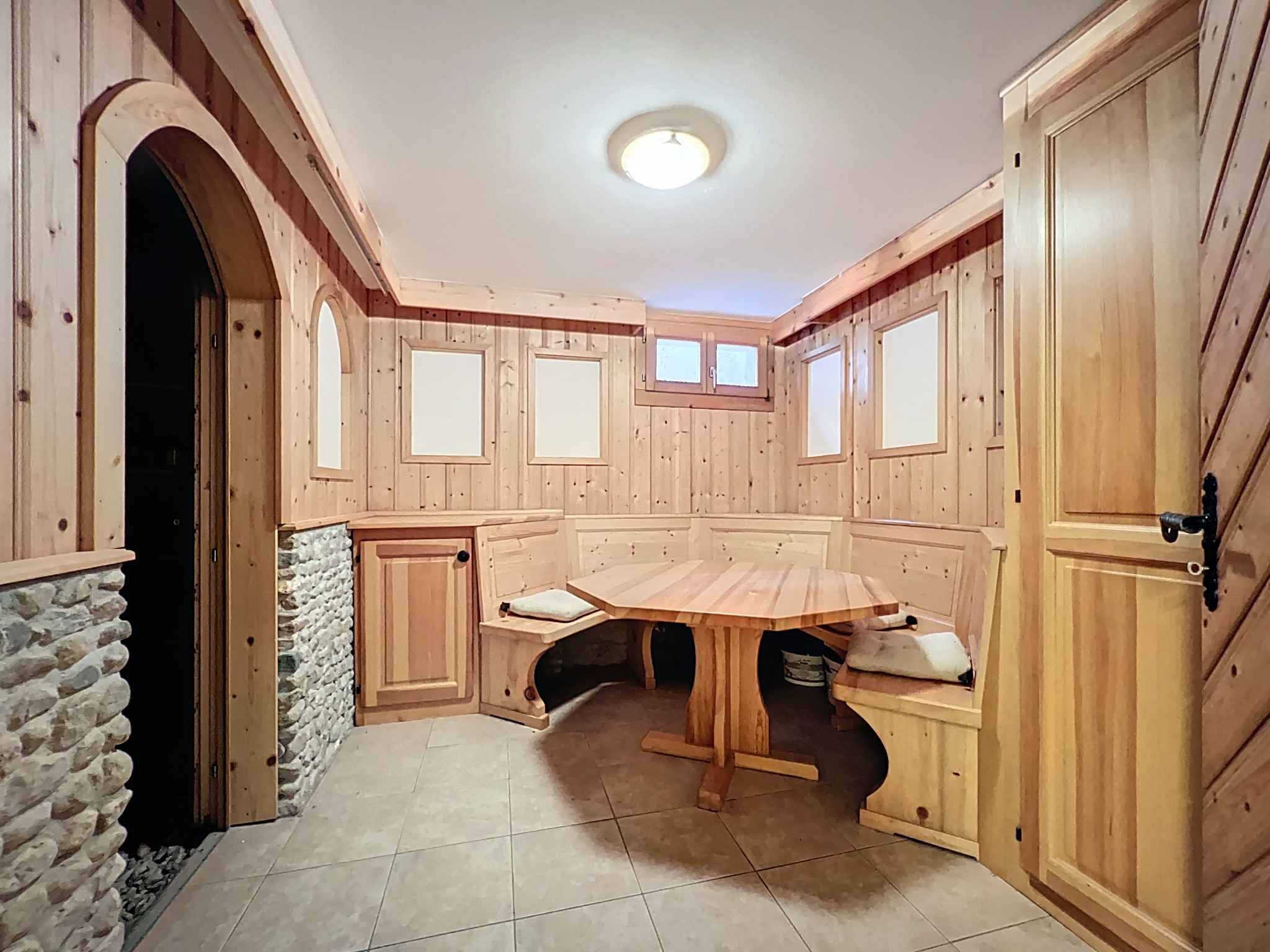 Le sous-sol aménagé offre de multiples possibilités : une grande salle de jeux ou bibliothèque, un bureau, un carnotzet chaleureux, une cave à vin, ainsi qu’une buanderie avec accès pratique et indépendant au vaste jardin de 560m2.