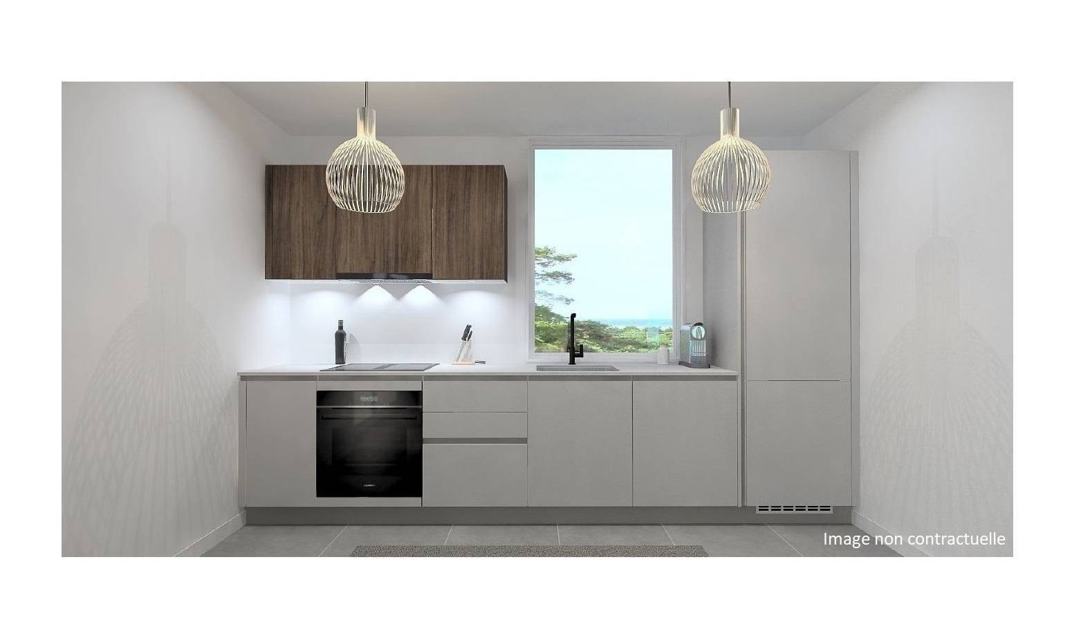 Cette villa se compose d'un hall d'entrée avec armoires murales, d'une cuisine ouverte offrant la possibilité d'ajouter un îlot central en option et d'un séjour donnant accès à la terrasse ainsi qu'au jardin.