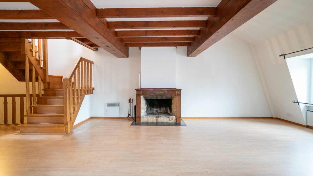 Diese Wohnung ist ideal mit ihrer angenehmen Größe und dem Kamin im Wohnzimmer.