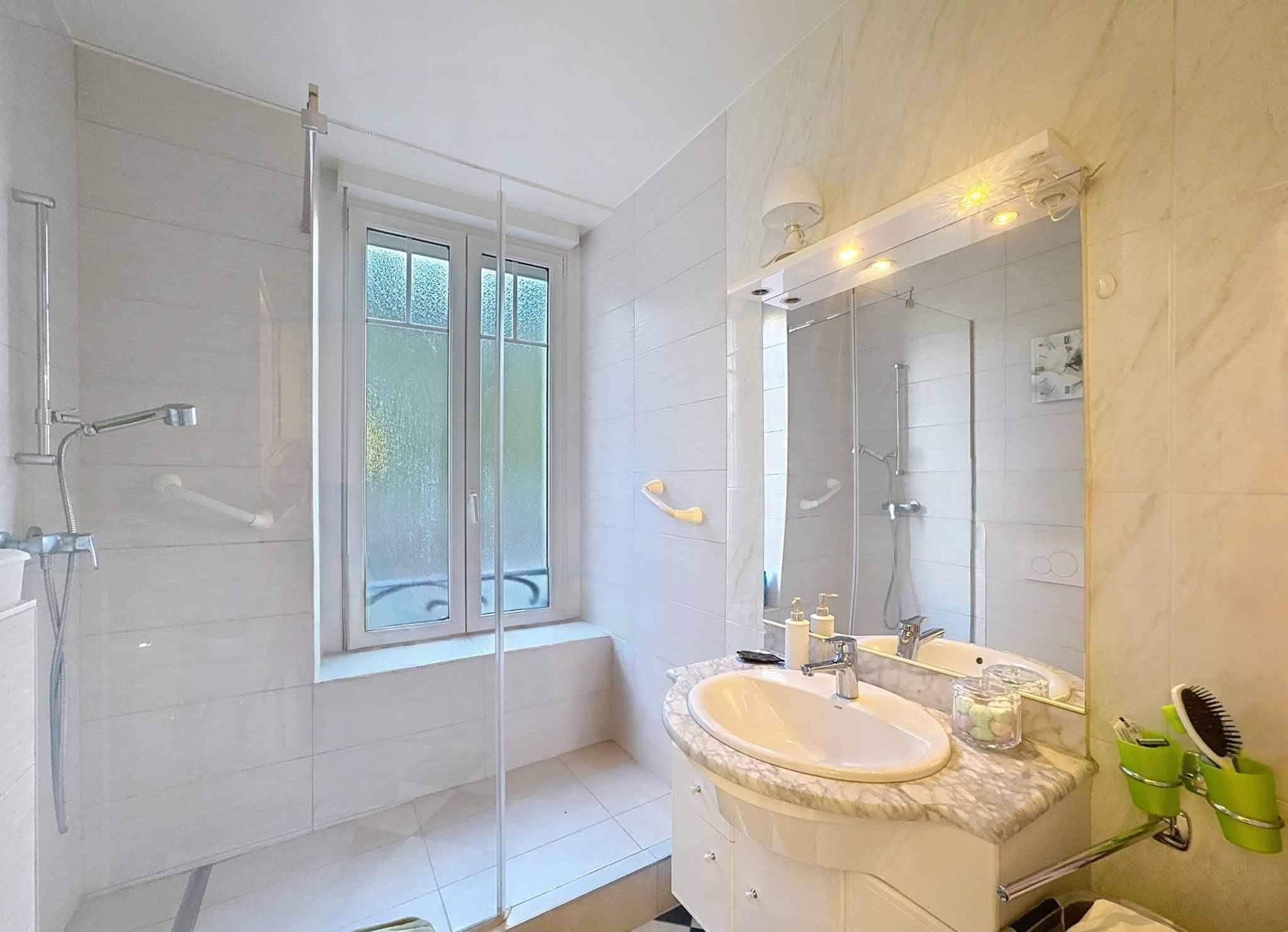 - 1 Großer begehbarer Duschraum mit Fenster und WC