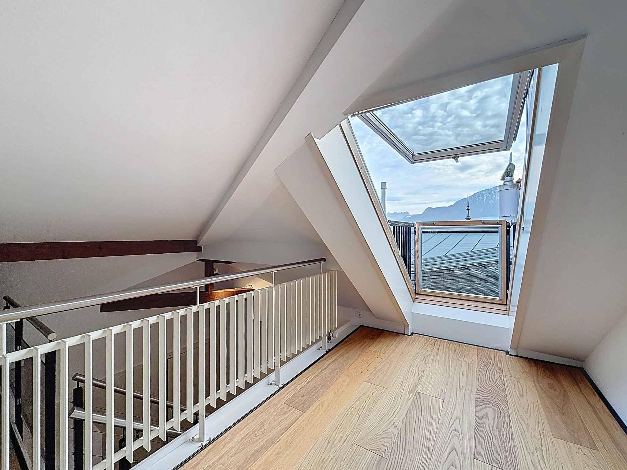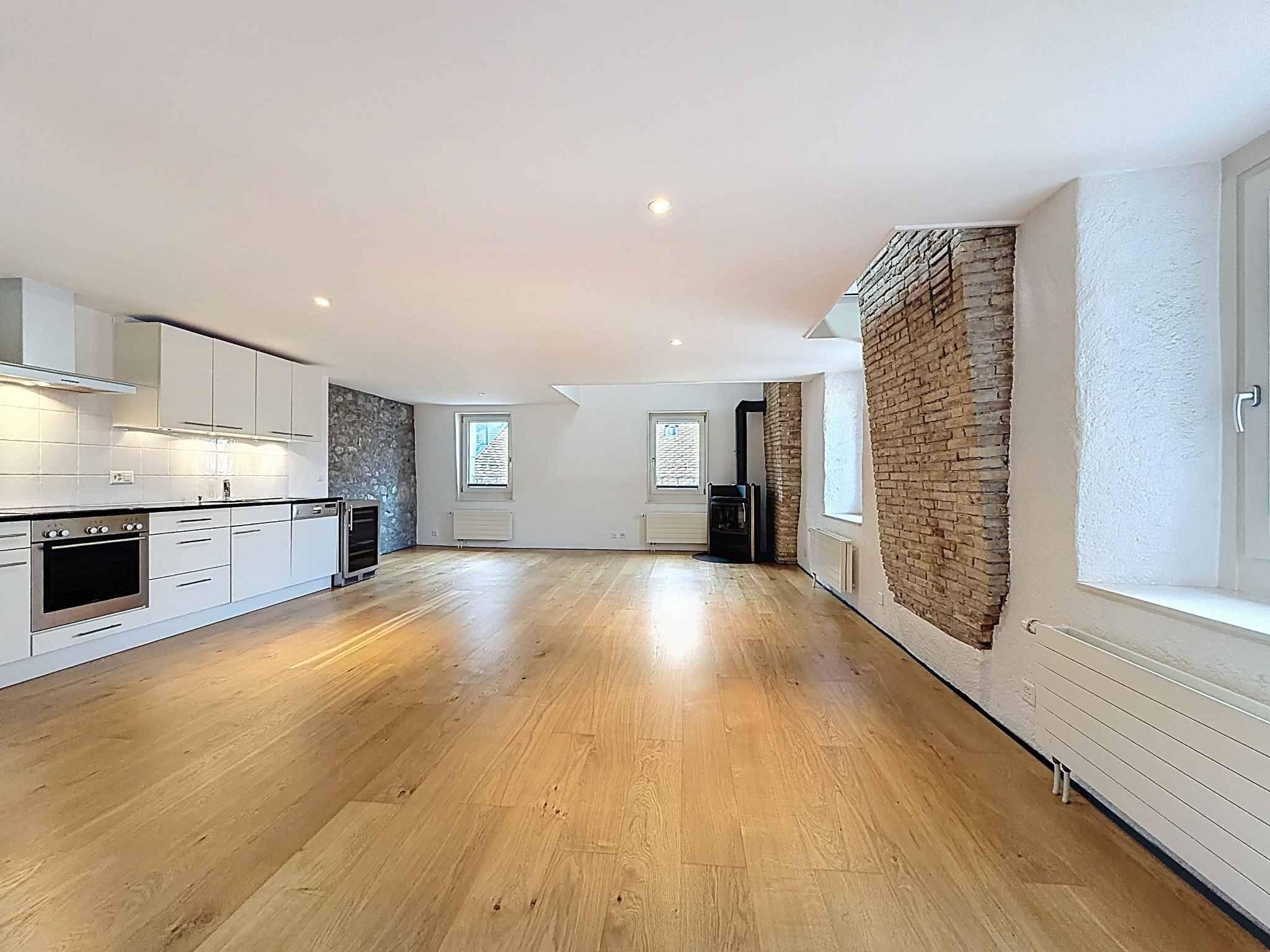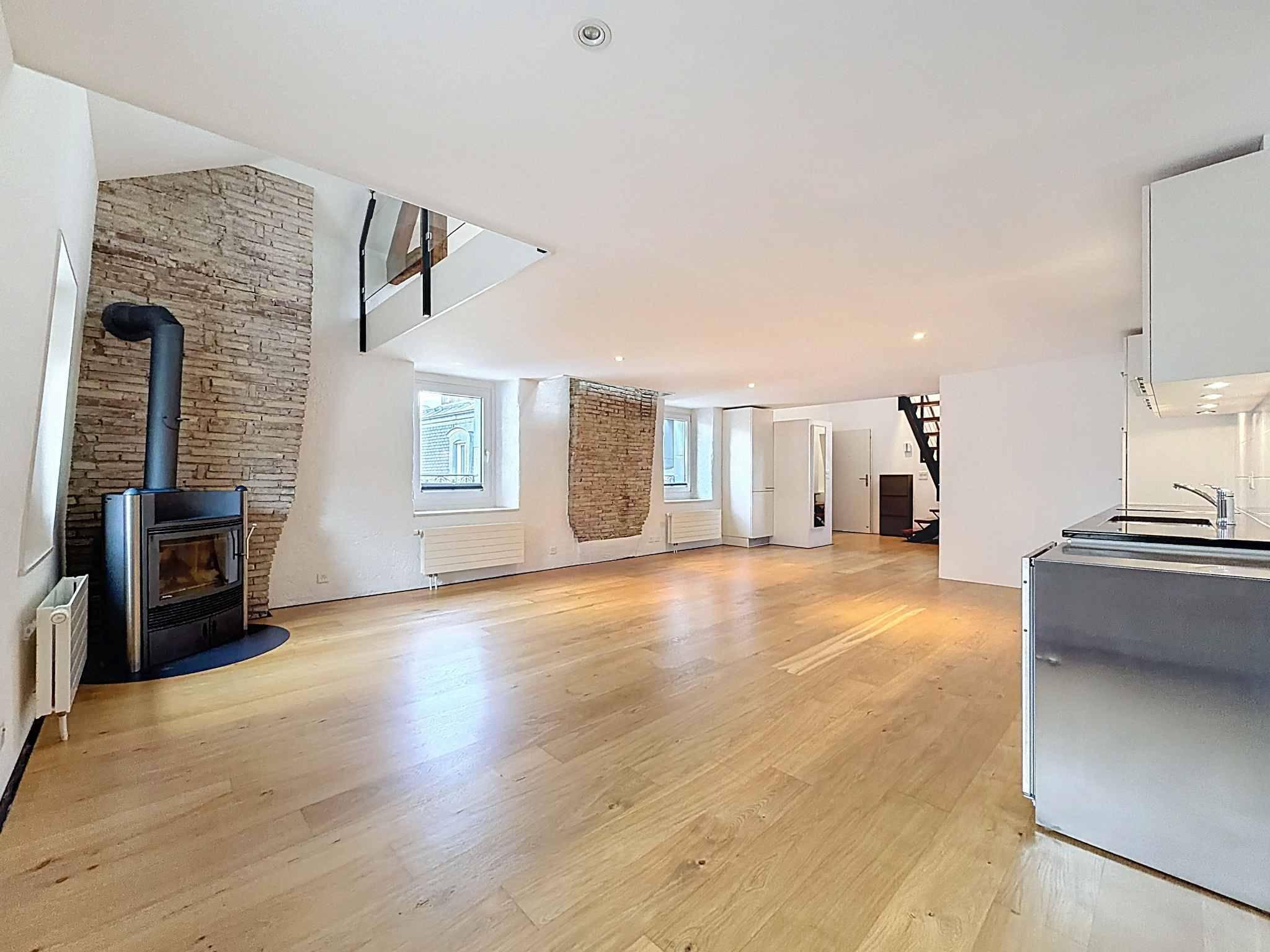 In den oberen Etagen des Gebäudes gelegen und mit dem Aufzug erreichbar, entwickelt diese Maisonette-Wohnung eine Fläche von ca. 95 m², die sich auf zwei Etagen verteilt.