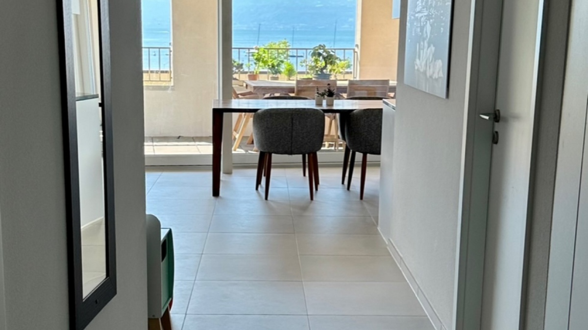 - Ein Wohn-/Esszimmer mit Zugang zum Balkon