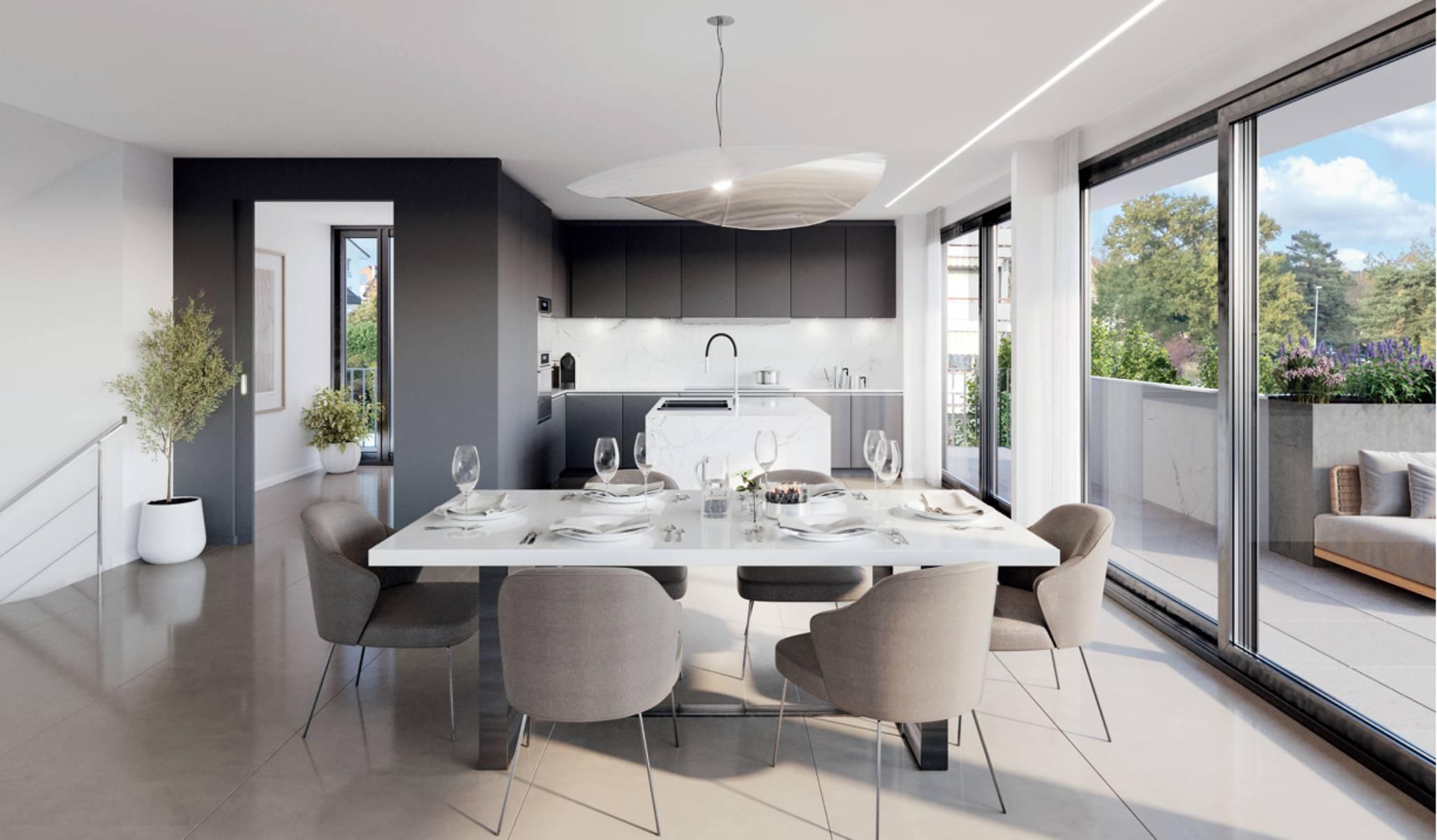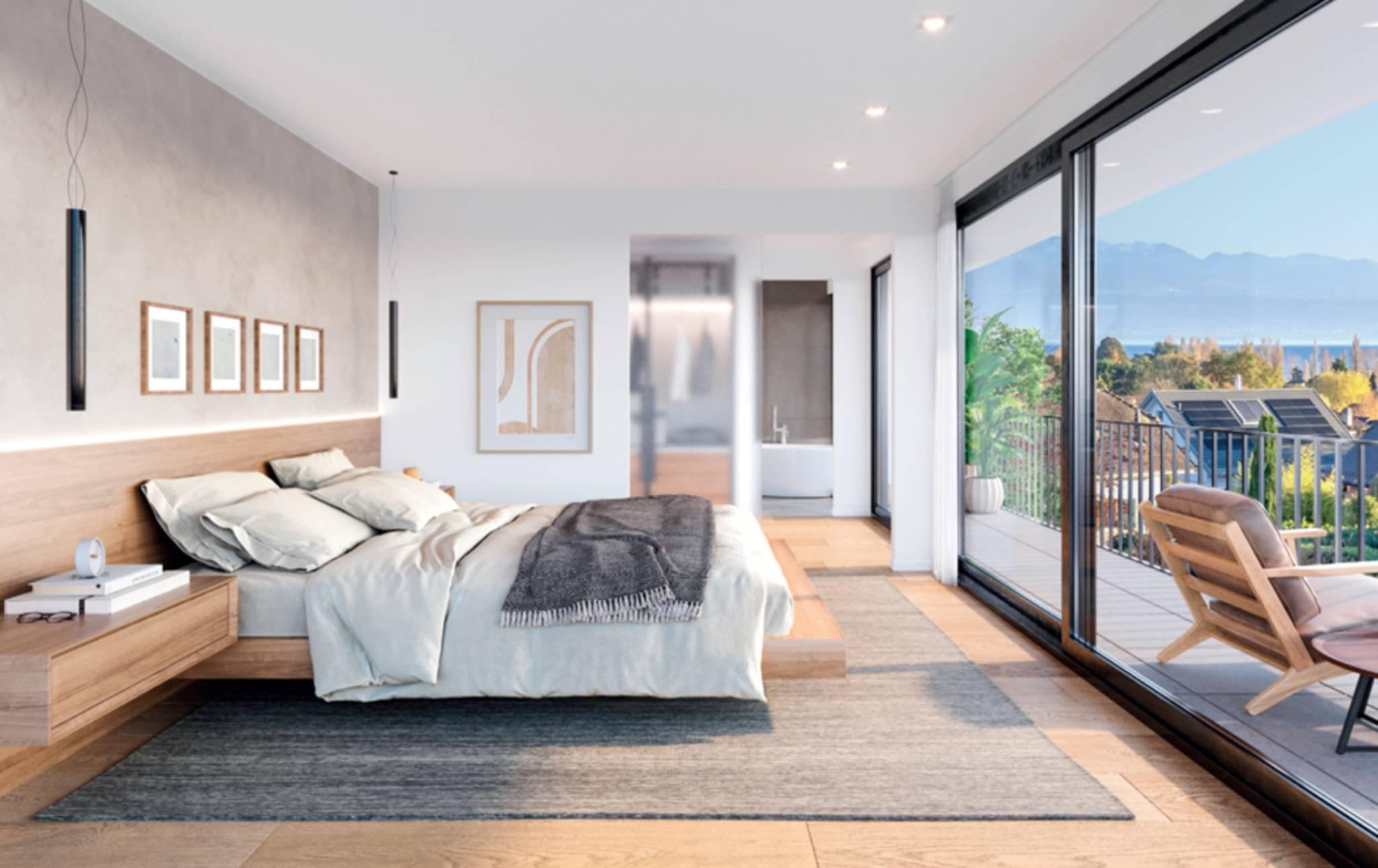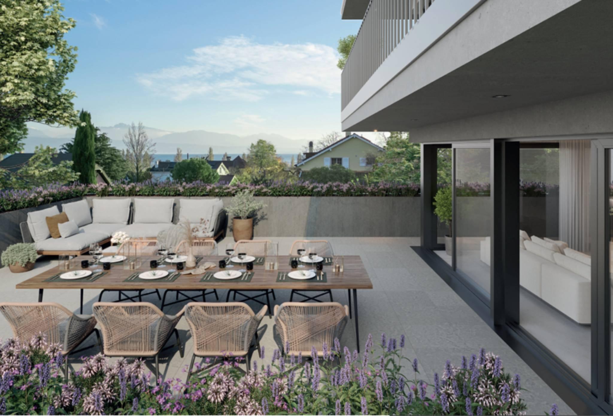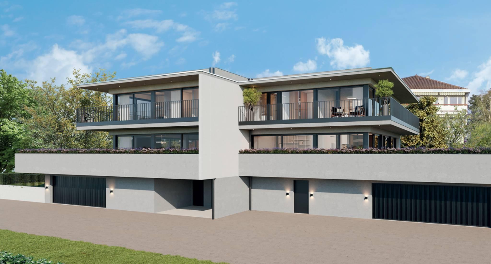 Entdecken Sie Rives d'Or, eine neue Immobilienentwicklung mit zwei Doppelhaushälften in idealer Lage in Préverenges, im Herzen einer friedlichen und grünen Umgebung, nur wenige Schritte vom Strand von Préverenges entfernt.