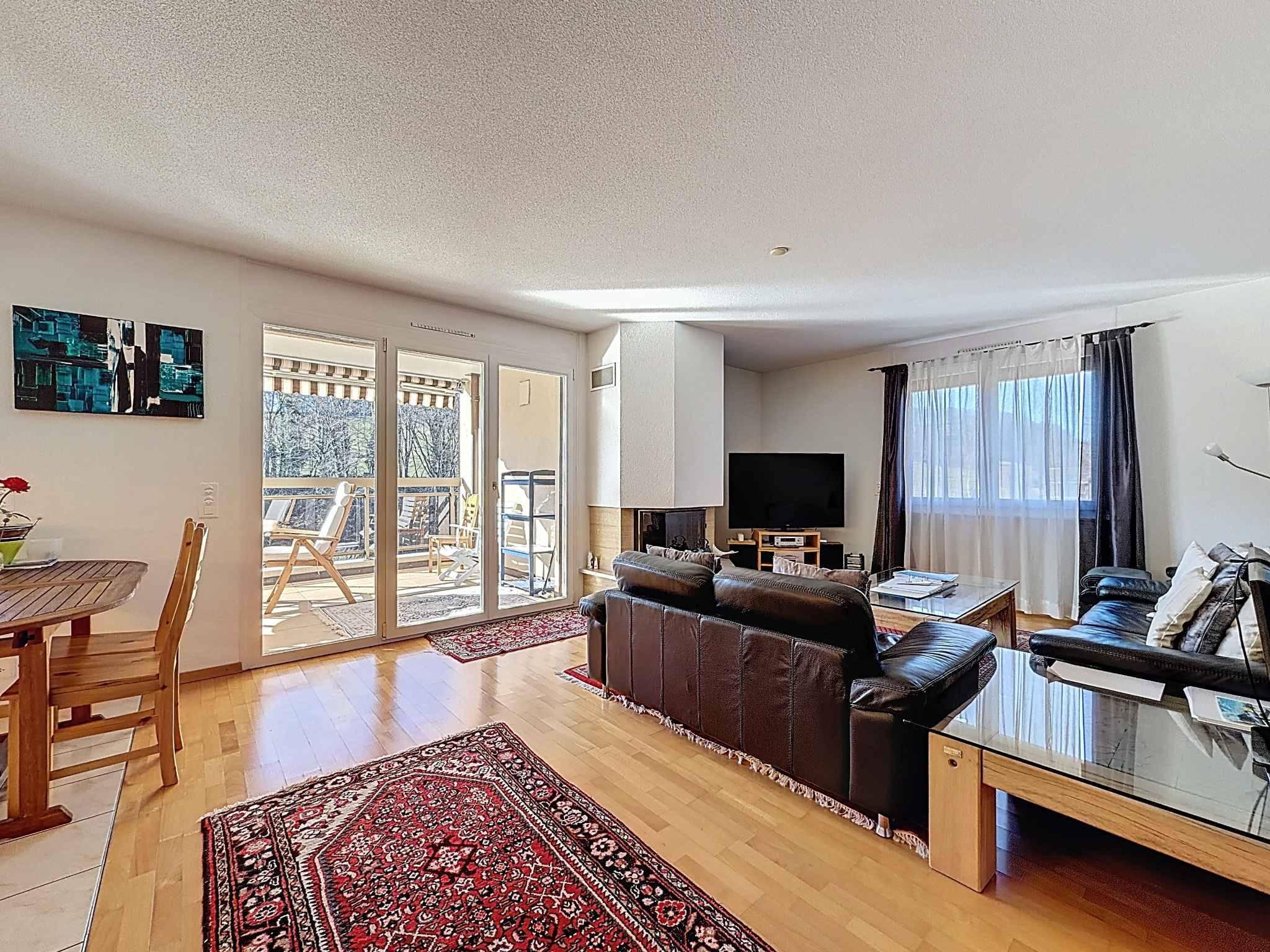 - Ein geräumiges Wohnzimmer mit einem Kamin und Zugang zum gemütlichen Südbalkon.