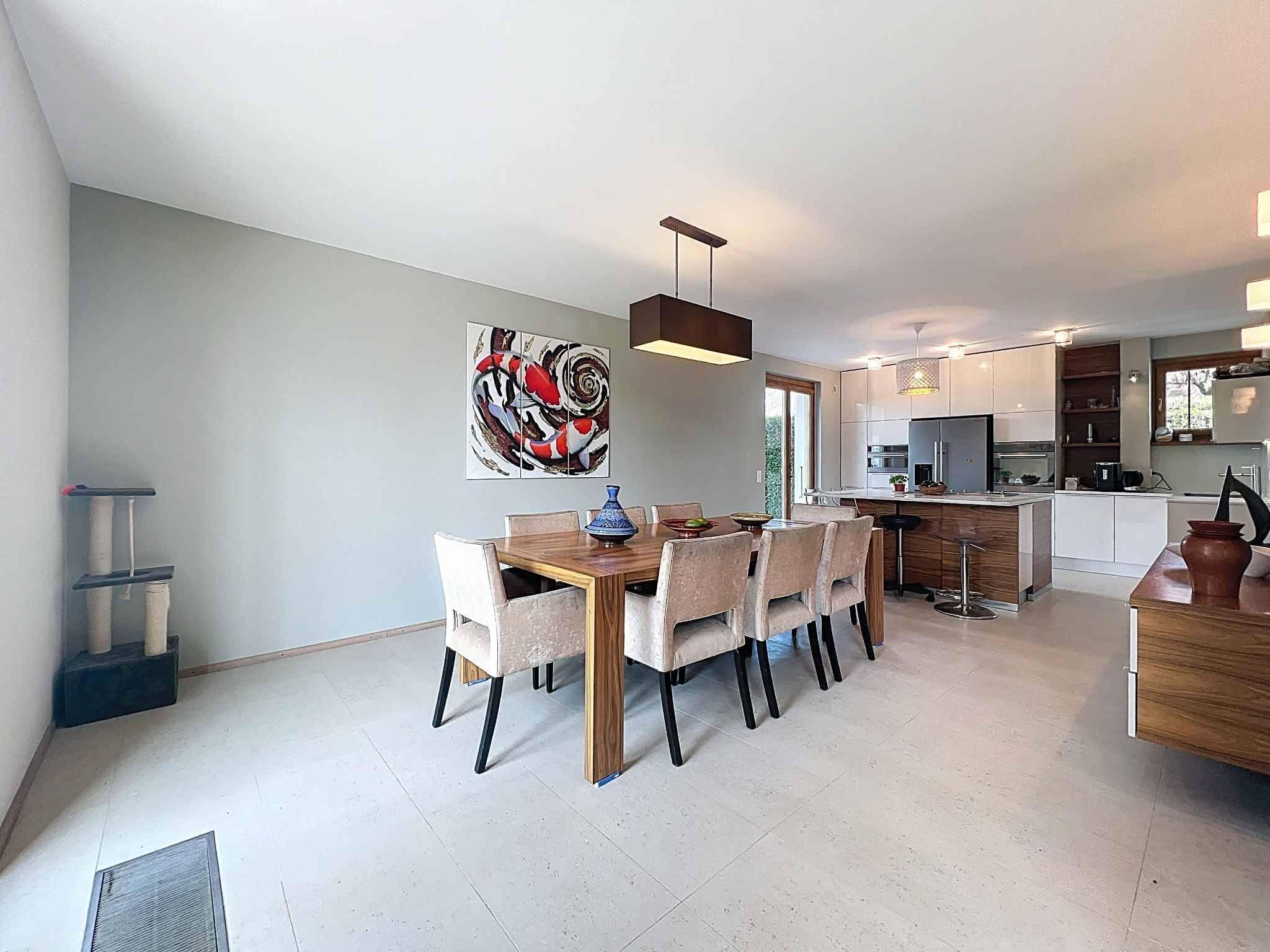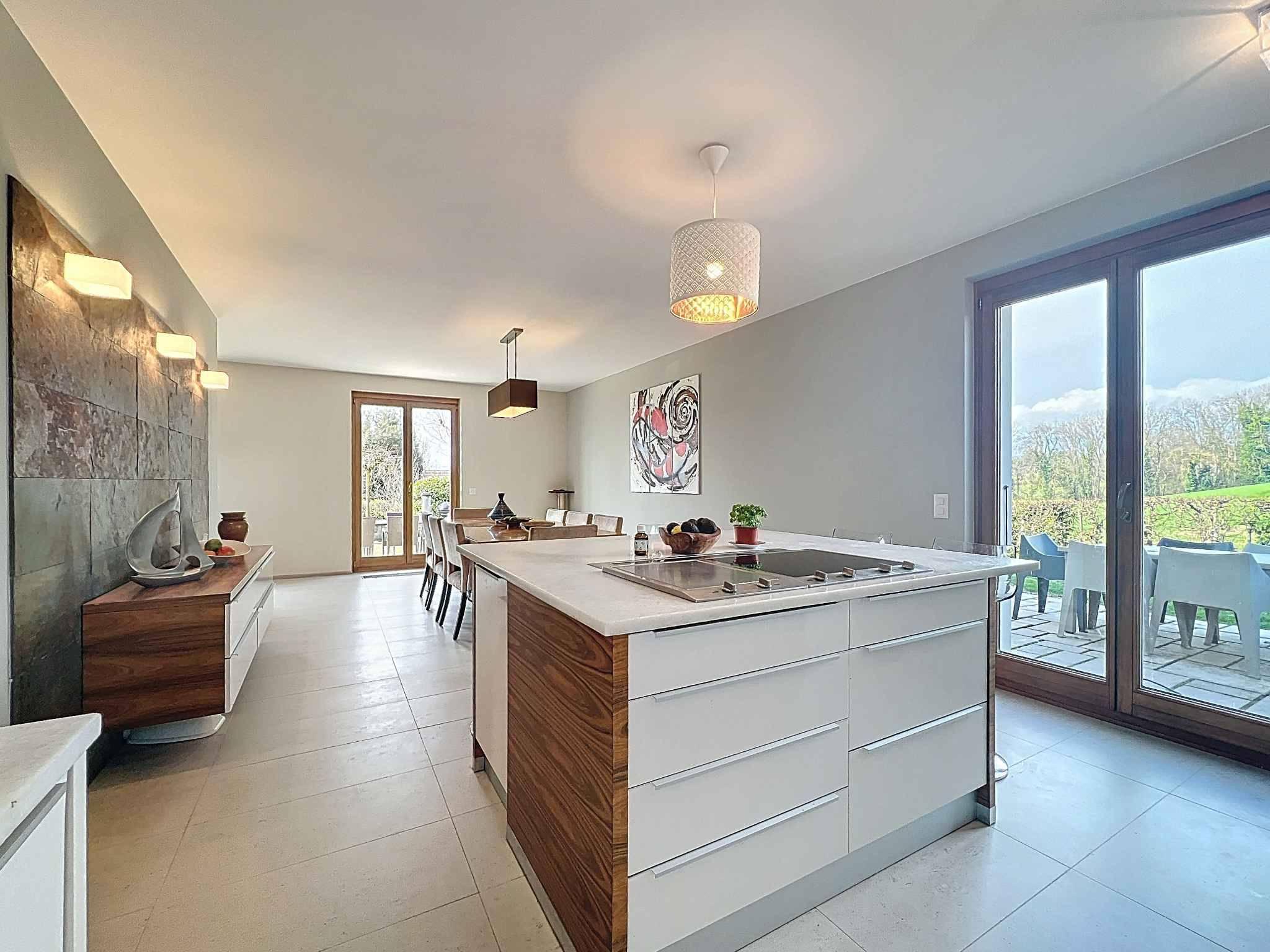 . Dieses Haus wird Sie durch seine großzügige Raumaufteilung (973m³), seinen Garten ohne vis-à-vis und mit schöner Aussicht (See und Landschaft), seine hochwertige Ausstattung, wie die Küche mit ihrer zentralen Insel, seine Böden, sei es das massive Eichenparkett oder der Steinboden, die zahlreichen Wandschränke, die ihm eine angenehme praktische Seite verleihen, die eingebauten Spots, usw., begeistern.