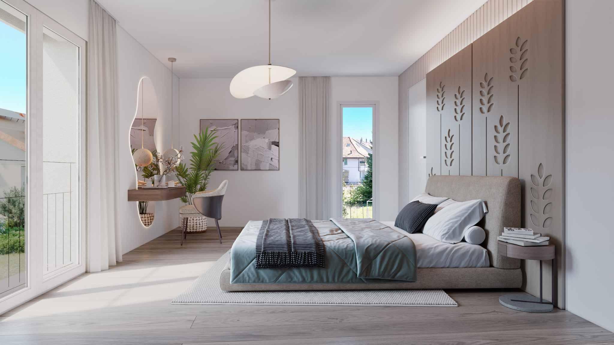 Located in the commune of Lavigny, close to amenities and public transport, this new project offers 18 apartments from 3.5 to 5.5 rooms, with floor areas ranging from 92 m² to 156 m².