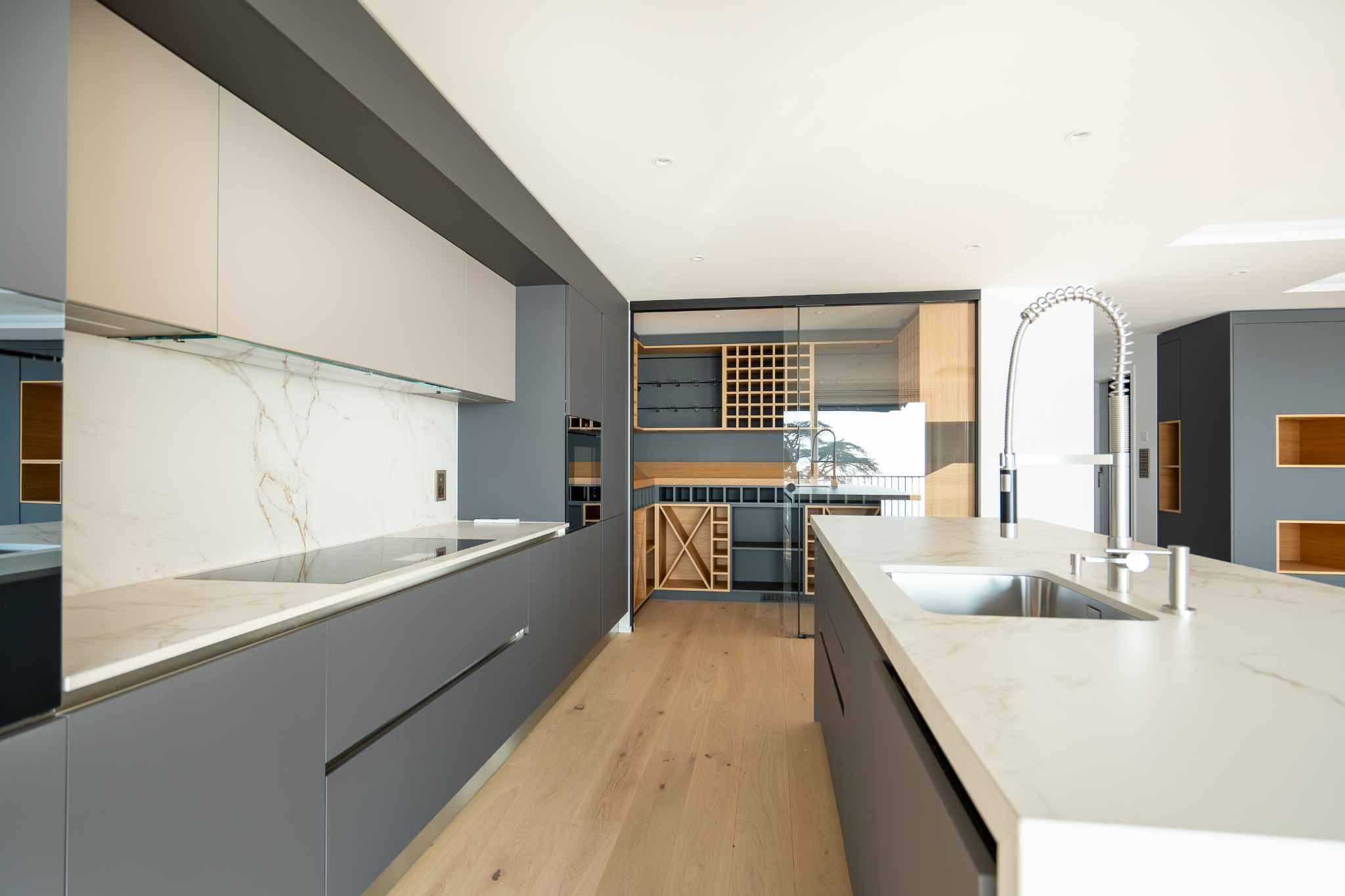 - Fully fitted kitchen opening onto living room with integrated wine cellar