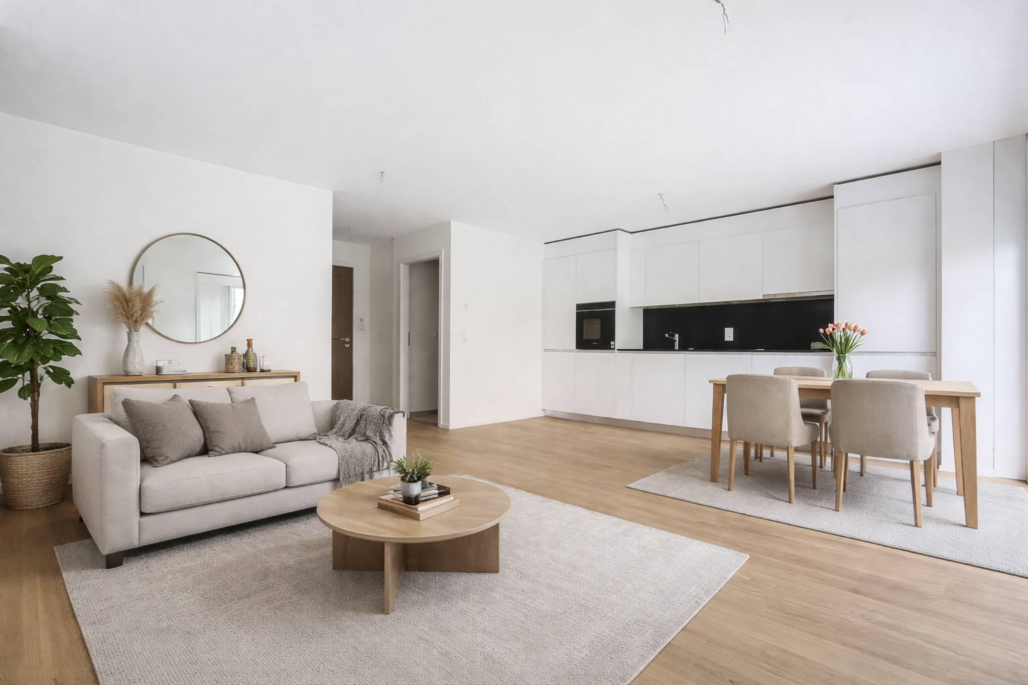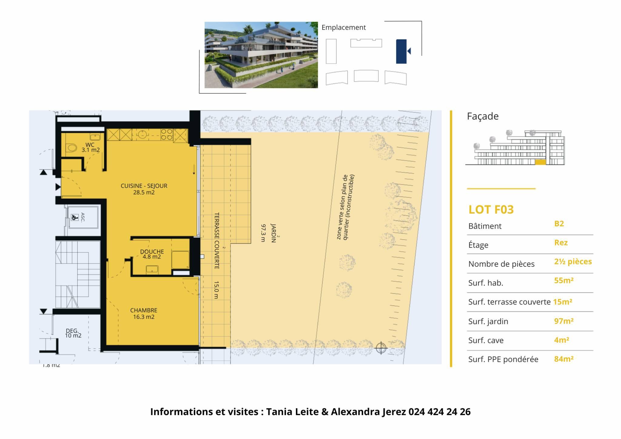 Cet appartement neuf de 2.5 pièces se trouve au rez-de-chaussée du bâtiment B2.