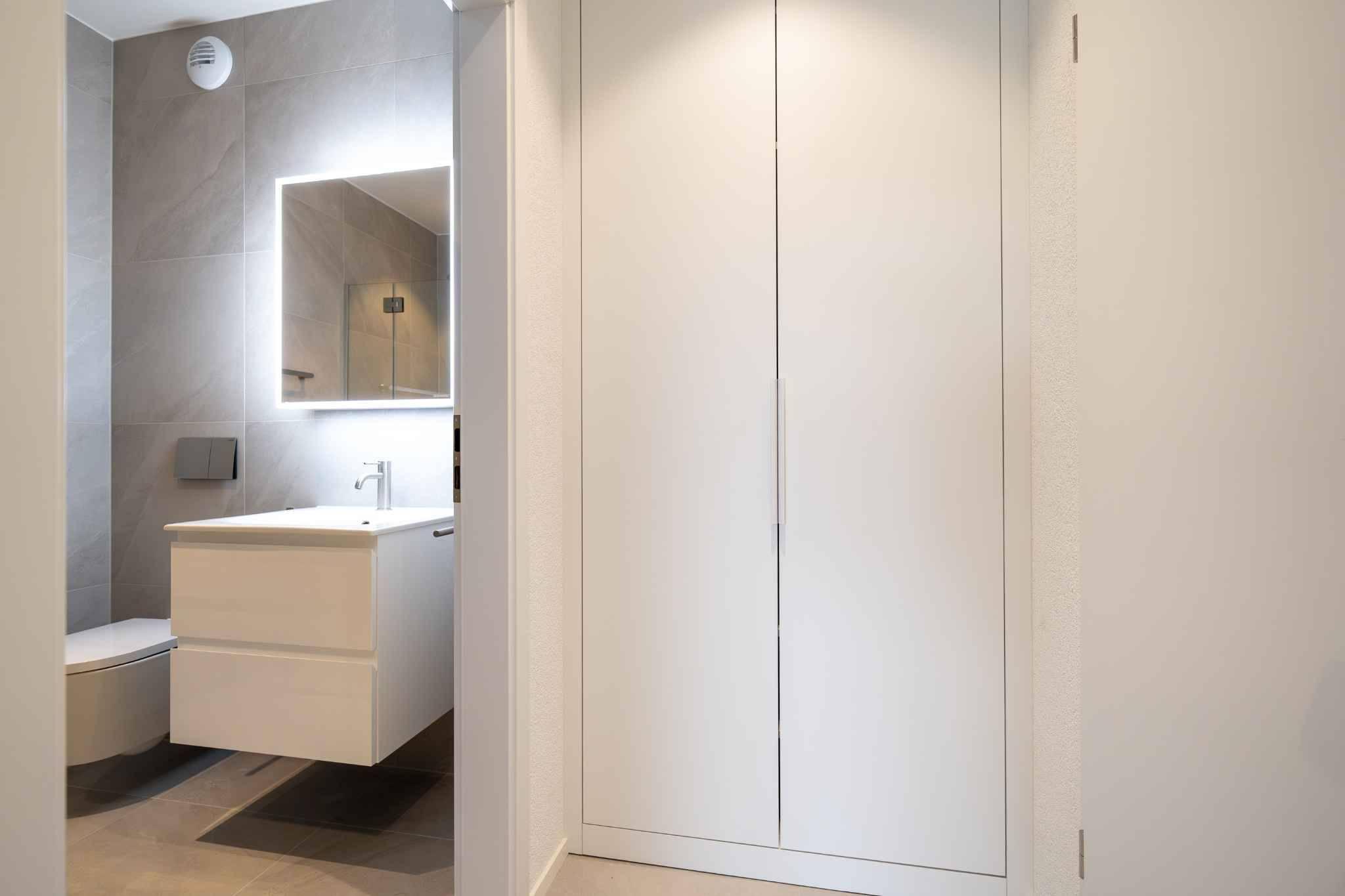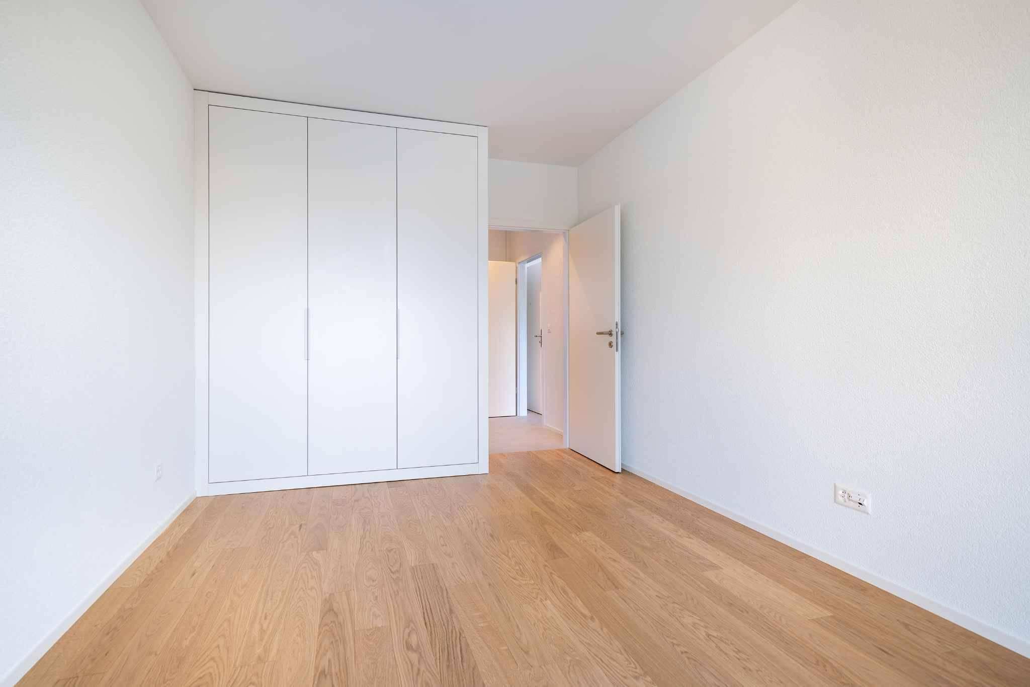 L’appartement dispose d’une chambre confortable avec armoire encastrée.