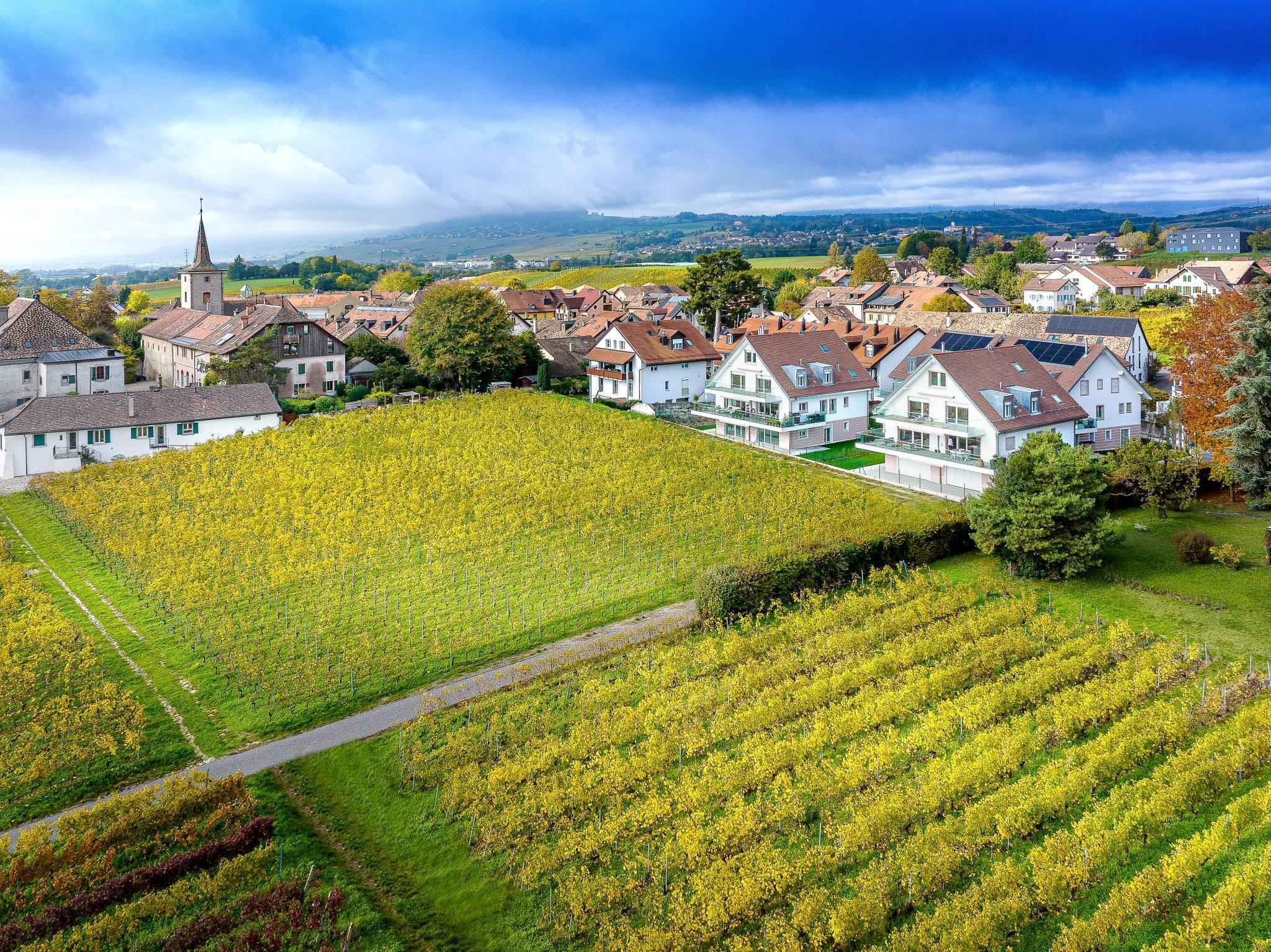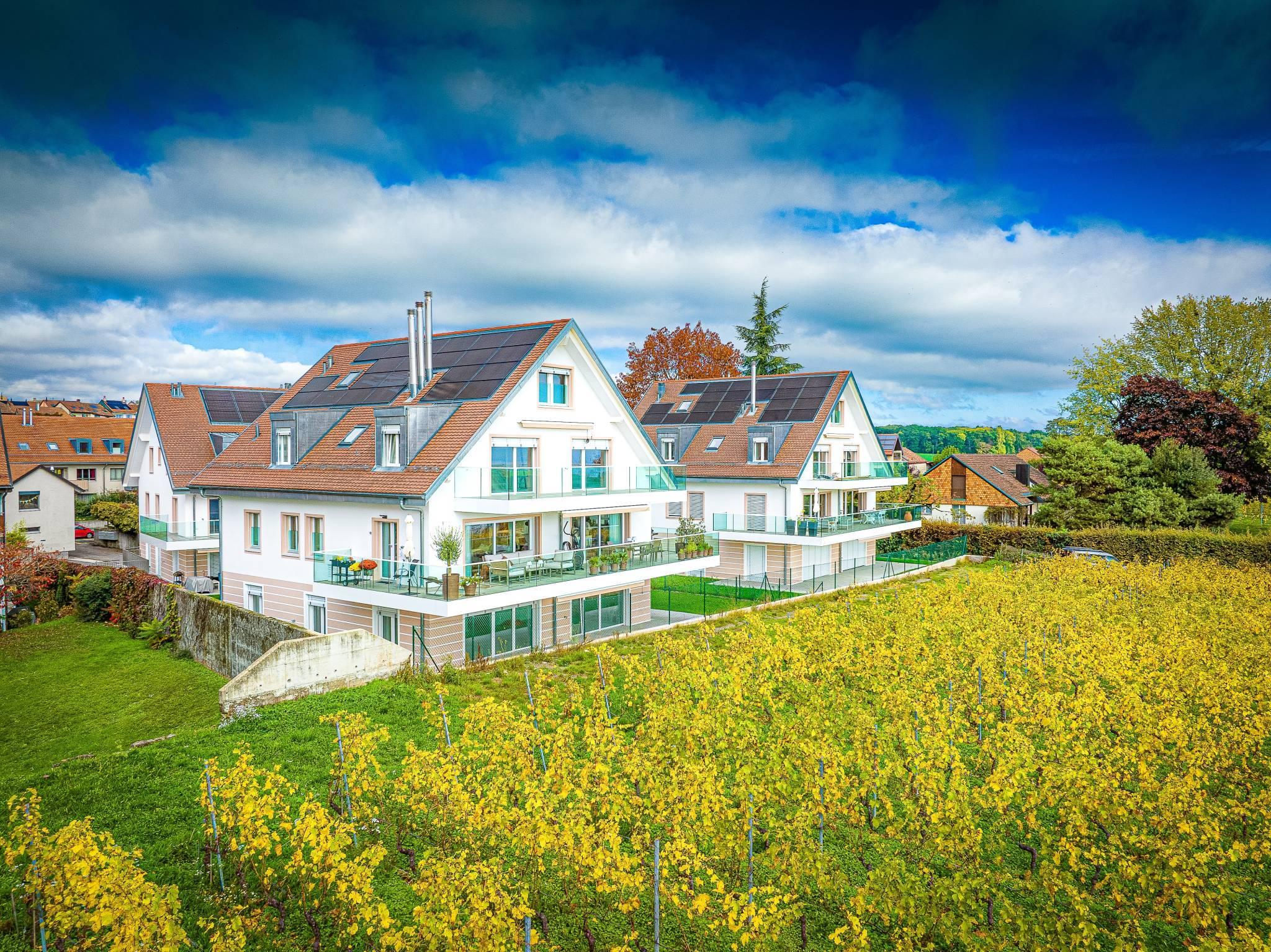 Dans un cadre exceptionnel offrant une vue dégagée sur les vignes, les Alpes et le lac, ce bel appartement neuf est distribué sur une surface de 146 m2 pondérés.
