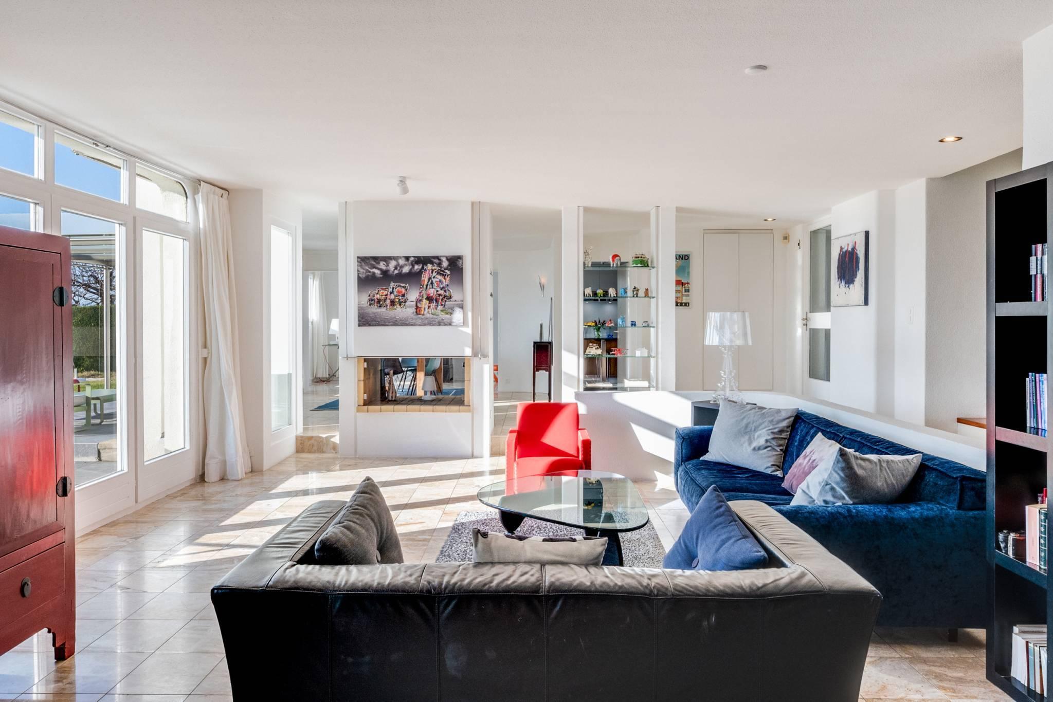 Celle-ci offre des pièces de belle dimension, extrêmement lumineuses. Elle est distribuée sur une surface de près de 300 m2 utiles. Elle offre des pièces à vivre confortables avec un spacieux double salon avec une magnifique cheminée centrale à double foyer, salon avec 2 terrasses en prolongement.
