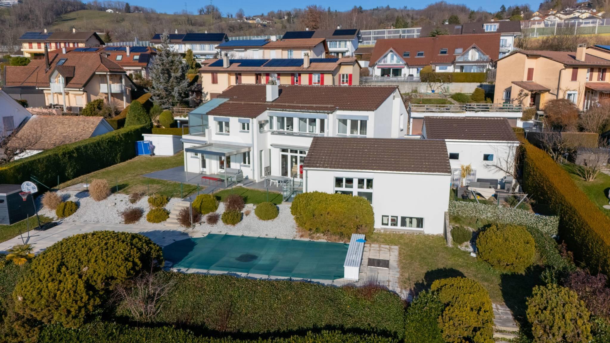 Spacieuse villa individuelle, érigée sur une parcelle de près de 1'300 m2 dans un quartier résidentiel & au calme.
