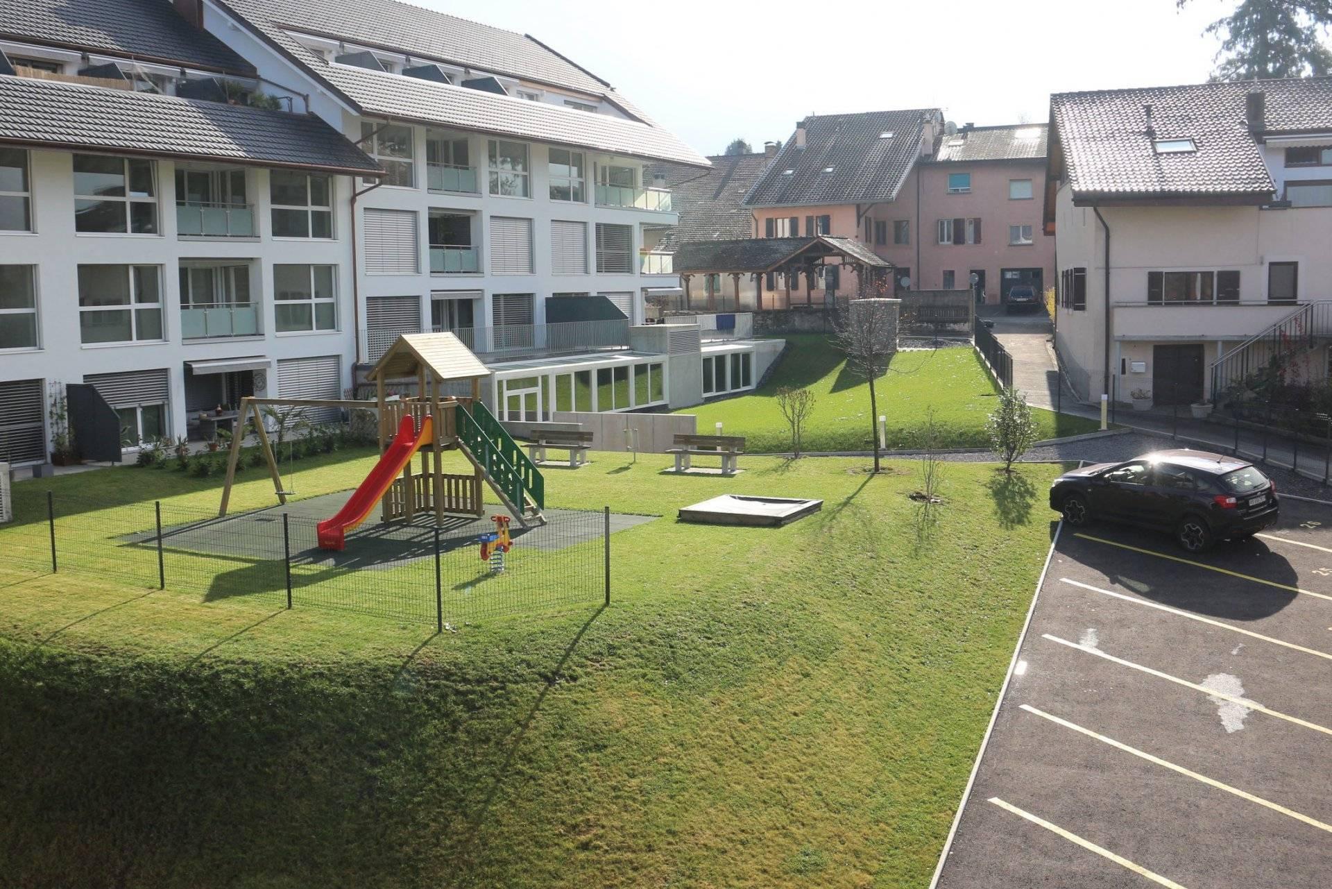 Des espaces verts avec aménagement d'une place de jeux pour enfants ont été prévus.
