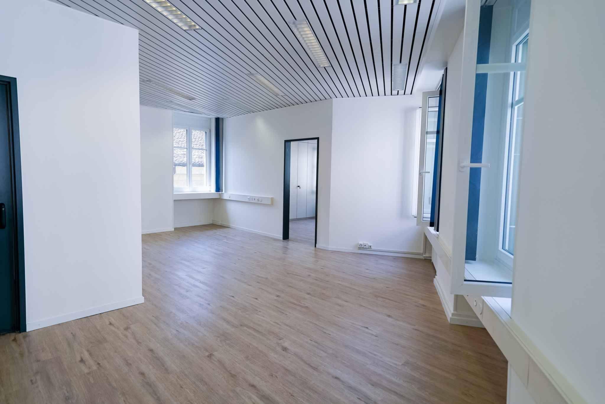 Donnant directement sur la place Saint-Laurent, cette surface se distribue en 5 espaces avec vue sur les toits et une belle luminosité.