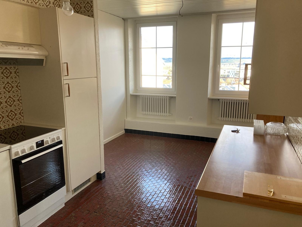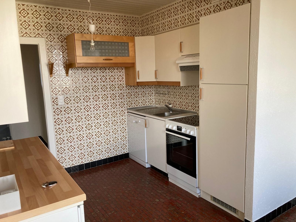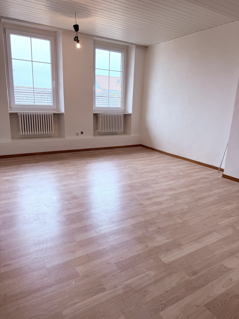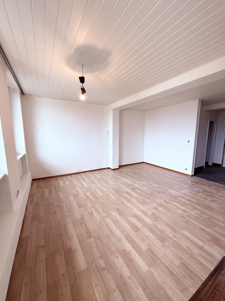 Appartement rénové de 3,5 pièces au 1er étage comprenant cuisine ouverte sur séjour, 2 chambres, salle de bains/WC, WC séparés, réduit.