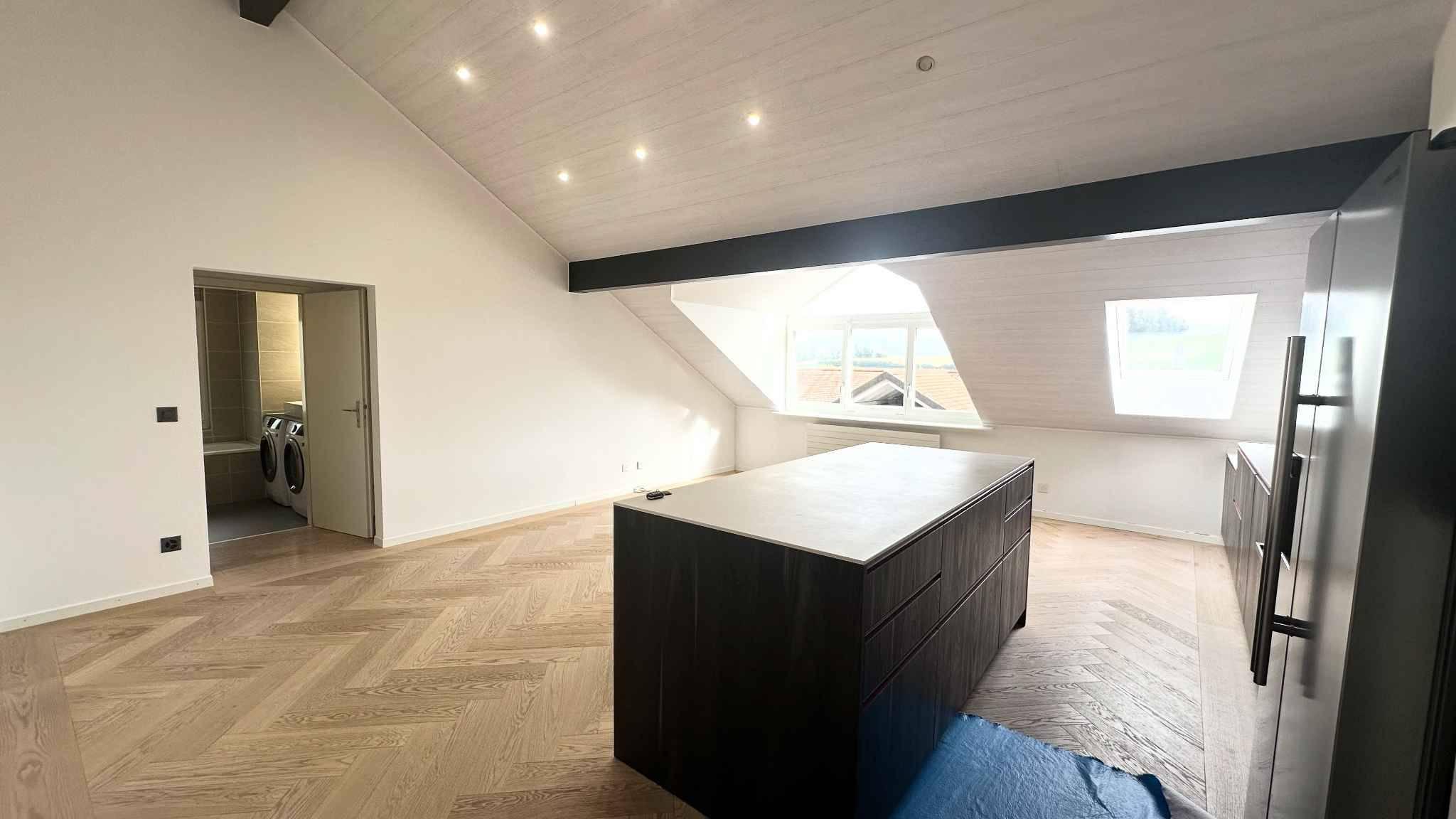 Nous vous proposons ce bel appartement de 4.5 pièces situé sous les combles, offrant un cadre chaleureux et agréable à vivre.