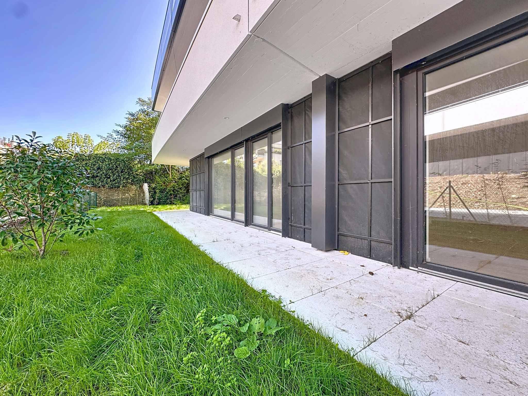 Hall d'entrée avec armoire murale, cuisine ouverte sur le séjour de 51.6m2 avec accès à la terrasse de 59m2 et au jardin de 122m2. une salle de douche, WC, lavabo et raccordement pour colonne de lavage, 4 chambre à coucher dont une parentale avec salle de bains privative comprenant baignoire, lavabo double et WC. Toutes les chambres ont accès à la terrasse et au jardin qui bordent le logement. Appartement d'exception !