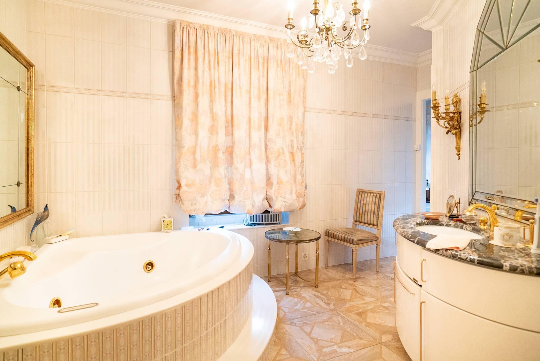 Au premier étage se trouve une cuisine, un WC visiteurs, deux salons, une chambre, ainsi qu'un spacieux salon convertible en bureau et une chambre avec salle de bain attenante.