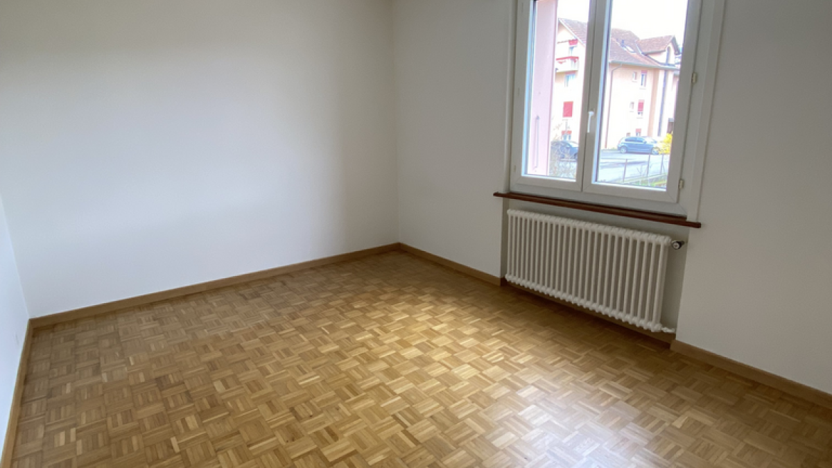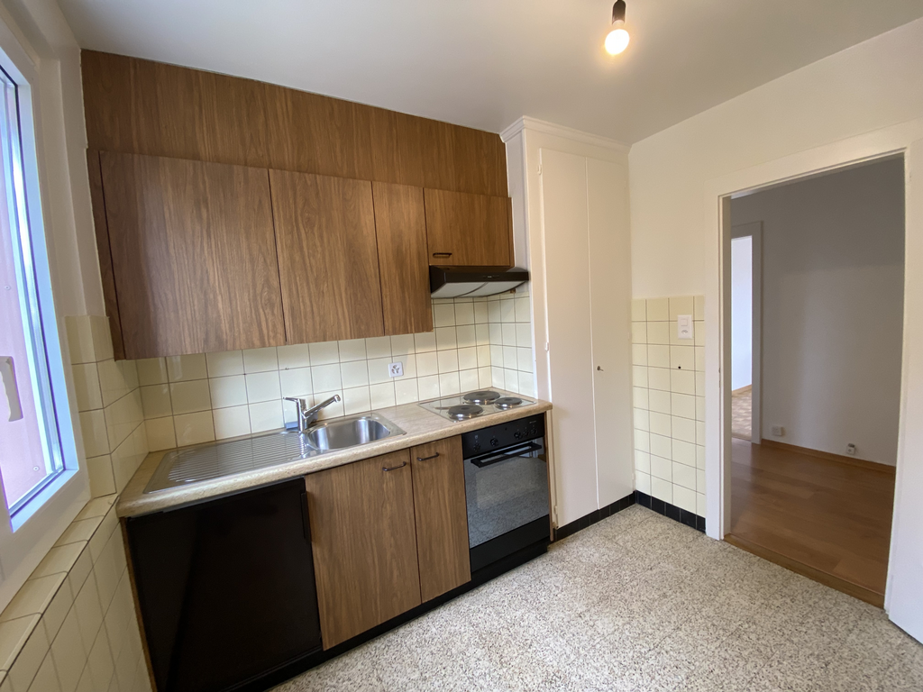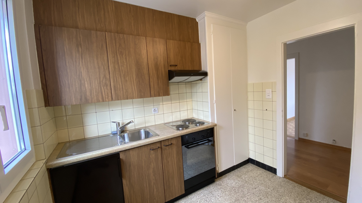 village proche d'Yverdon, joli 3.5 pièces comprenant, hall, séjour, cuisine agencée, 2 chambres, salle-de-bains/WC. Balcon