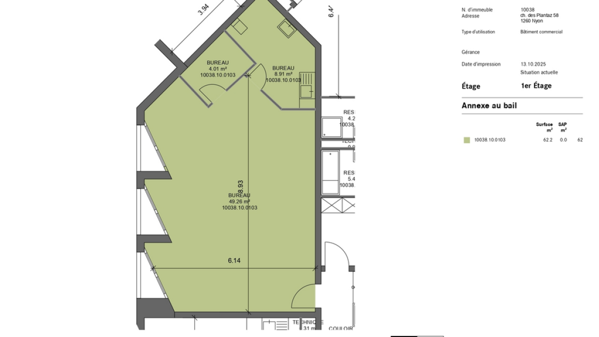 A Nyon, à un quinzaine de minutes de marche de la gare, bureau d'environ 62m2 au 1er étage d'un petit immeuble résidentiel.