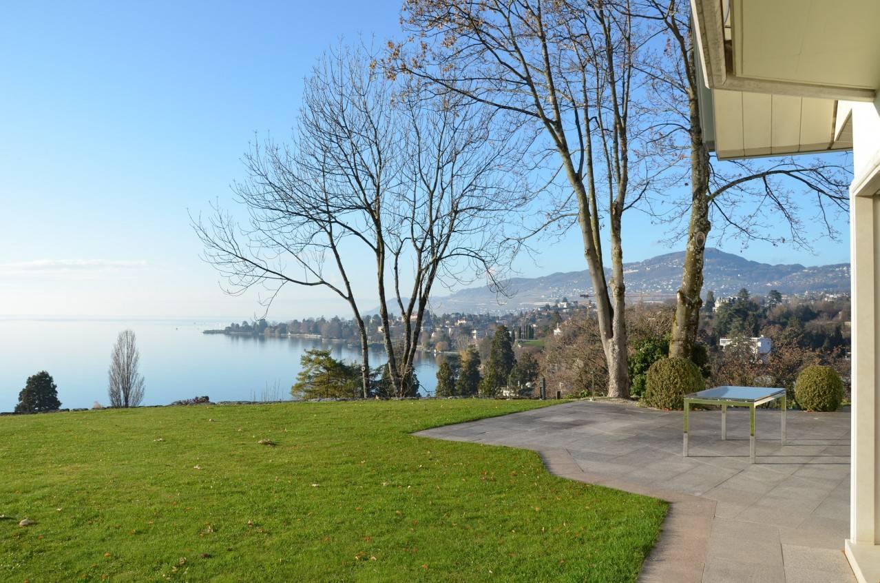 Sur une parcelle de 6'528 m2, la villa est entourée par un superbe jardin avec de grands arbres, d’un étang et de plantes rares formant un cadre verdoyant exceptionnel tout en garantissant une privacité totale, le tout profitant d'une vue panoramique sur le lac et les Alpes grâce à position dominante et surtout d'un clame olympien.