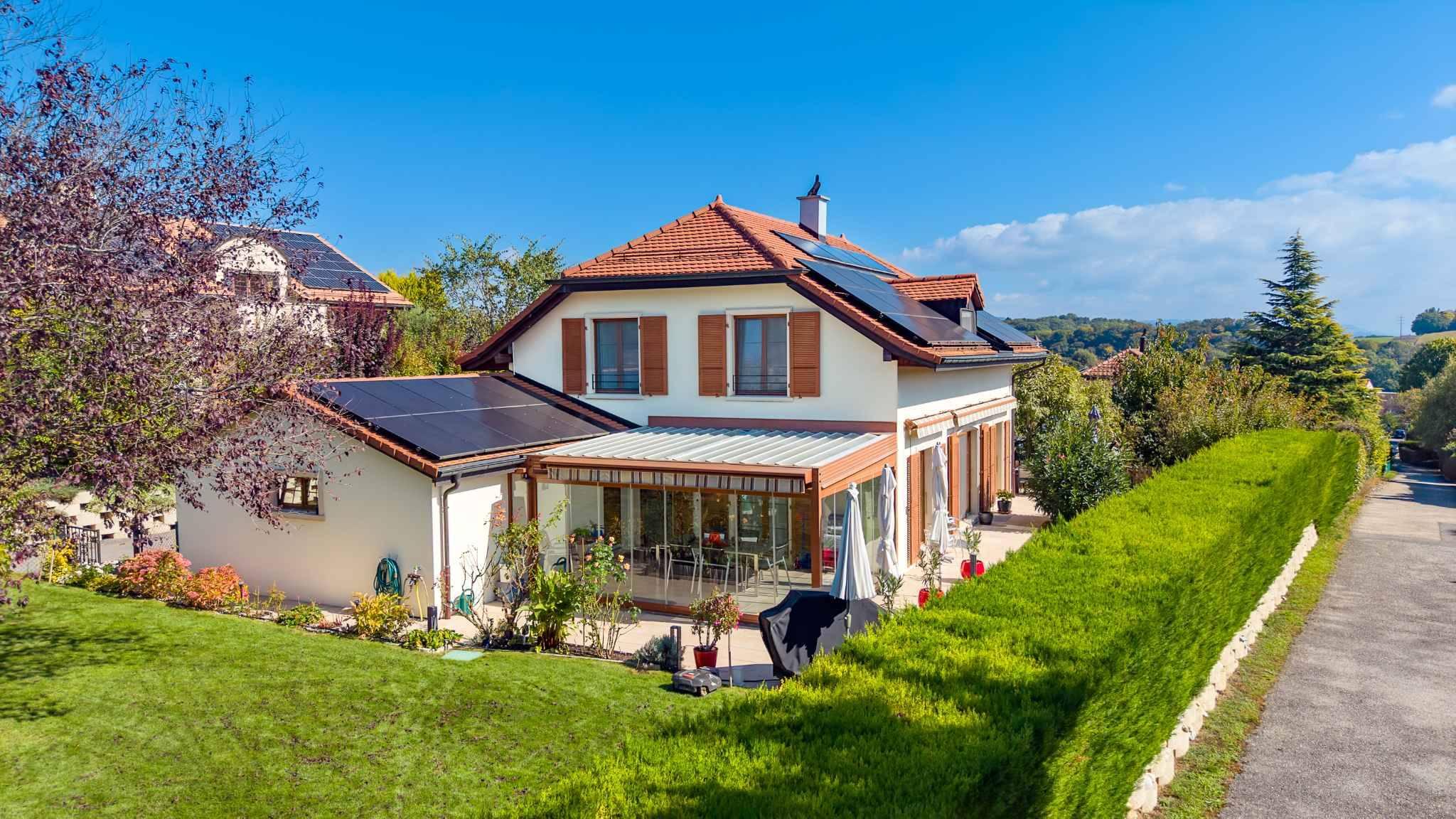 Construite avec des matériaux nobles, cette maison individuelle de 197m2 habitables allie élégance contemporaine et hautes performances énergétiques grâce à ses installations géothermiques et solaires.