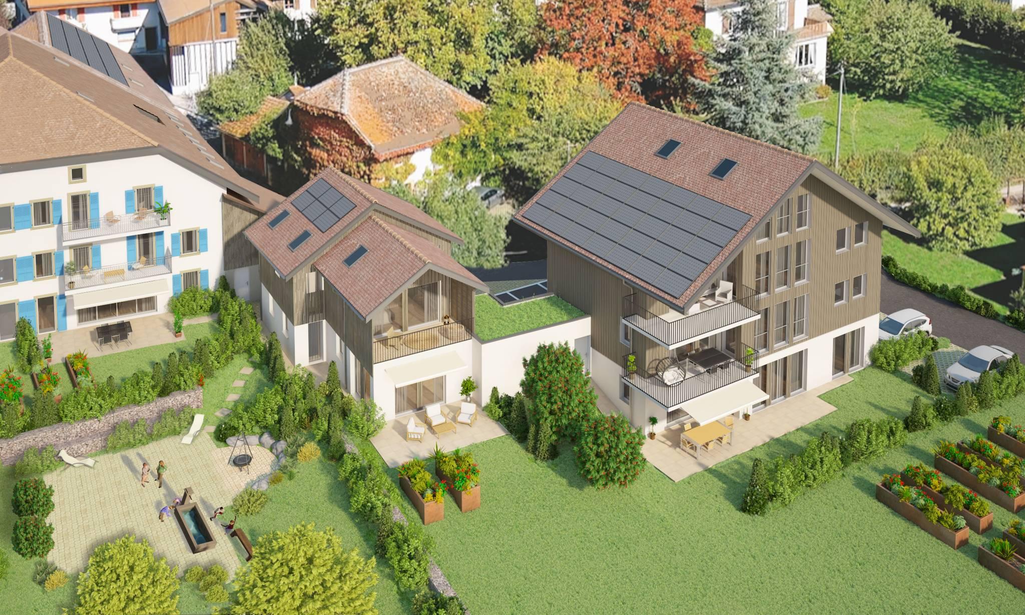 Situé en bordure de zone agricole, ce projet comprend 8 appartements, une villa individuelle et un local commercial répartis dans 3 bâtiments distincts qui sauront garder le charme et l'authenticité de la ferme existante.