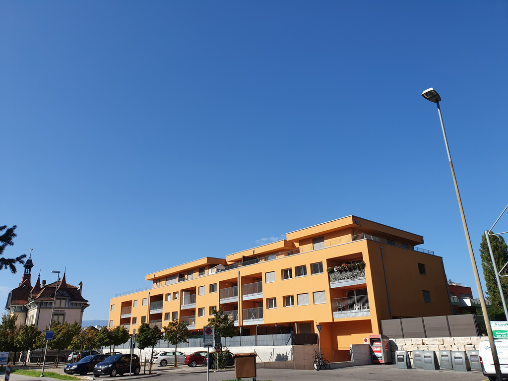 Place de parc intérieure No. 66 au sous-sol d'un immeuble récent. Accès par rampe de garage, sécurisé par une porte. Ouverture par télécommande.