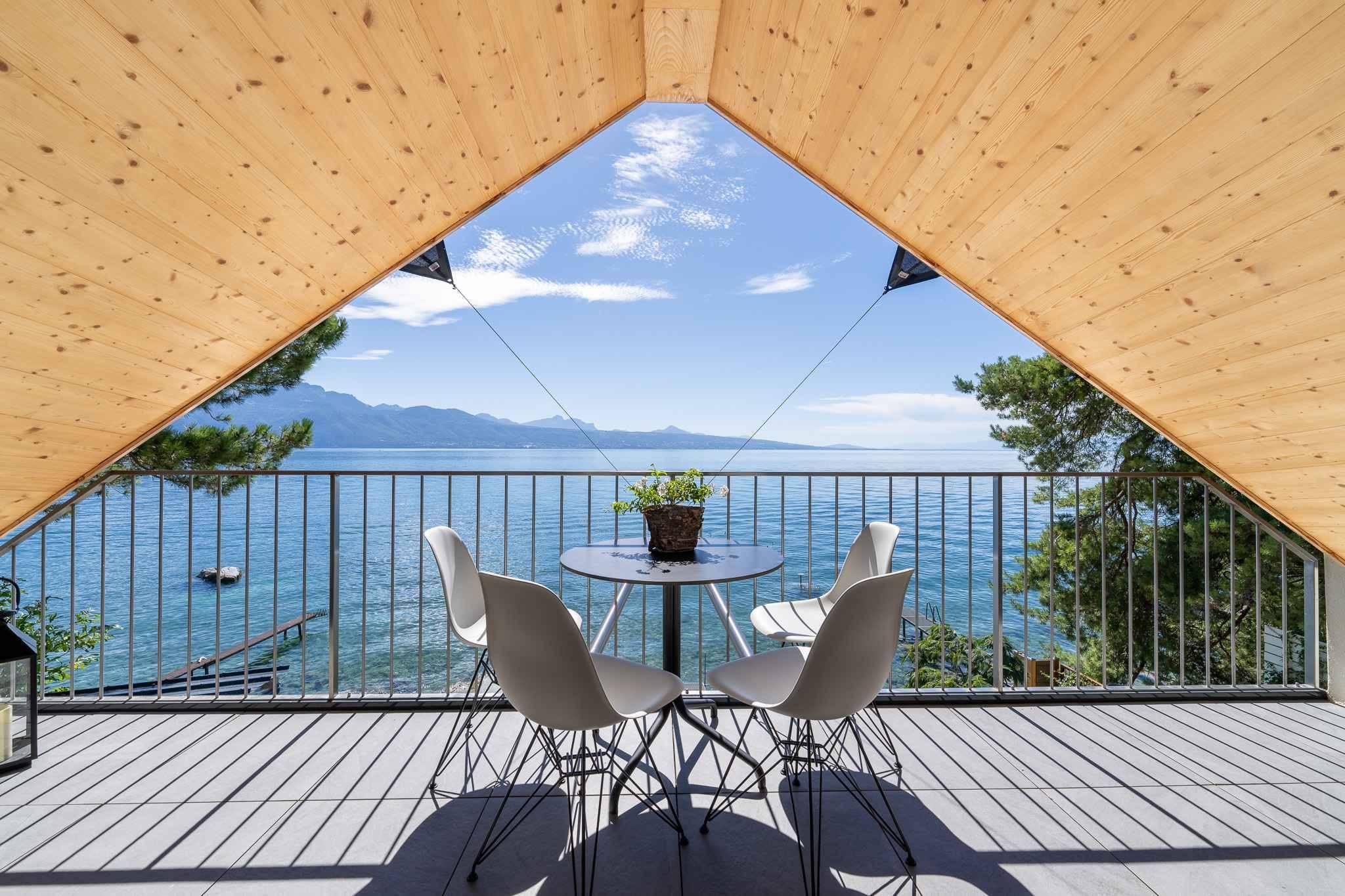 Located on the first line of the lake, this recently built property comprises two duplex apartments. It offers 290 m² of living space spread over 8.5 rooms, with direct access to the lake, a private pontoon, a mooring place and a boat shelter.