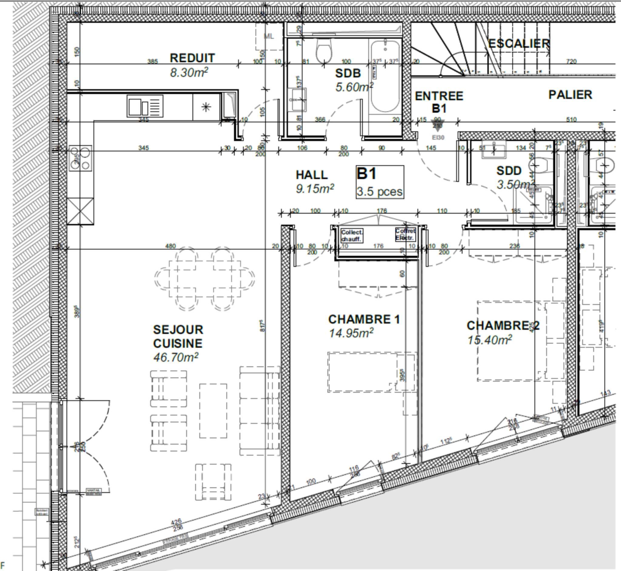 Situé au rez supérieur du bâtiment B, ce superbe 3.5 pièces de 106.70 m² orienté sud-ouest, séduit par sa pièce à vivre de 46 m² et sa terrasse de 27.80 m². La cuisine fonctionnelle est complétée par un réduit de 8 m², idéal pour optimiser le rangement et l’organisation du quotidien.