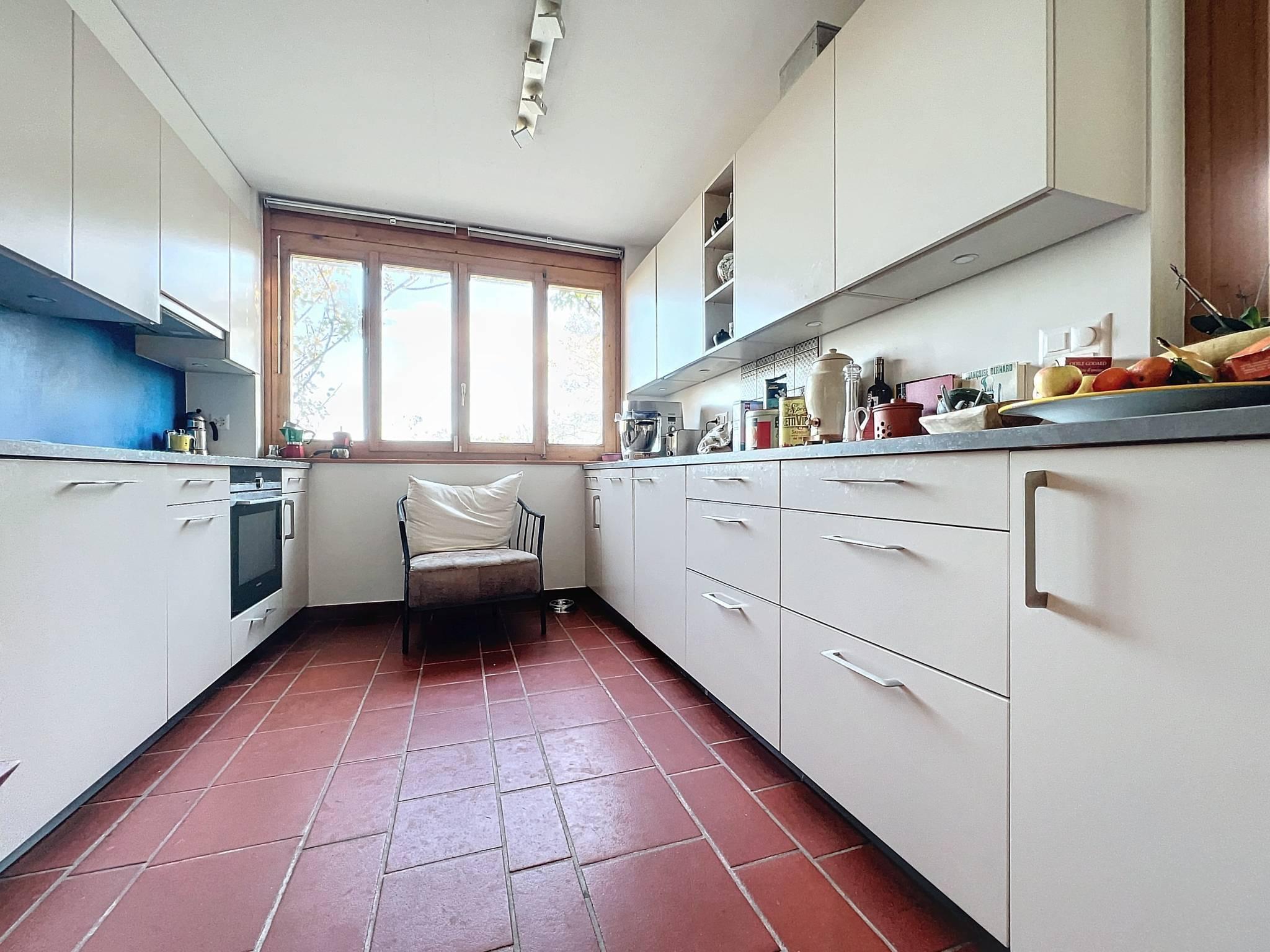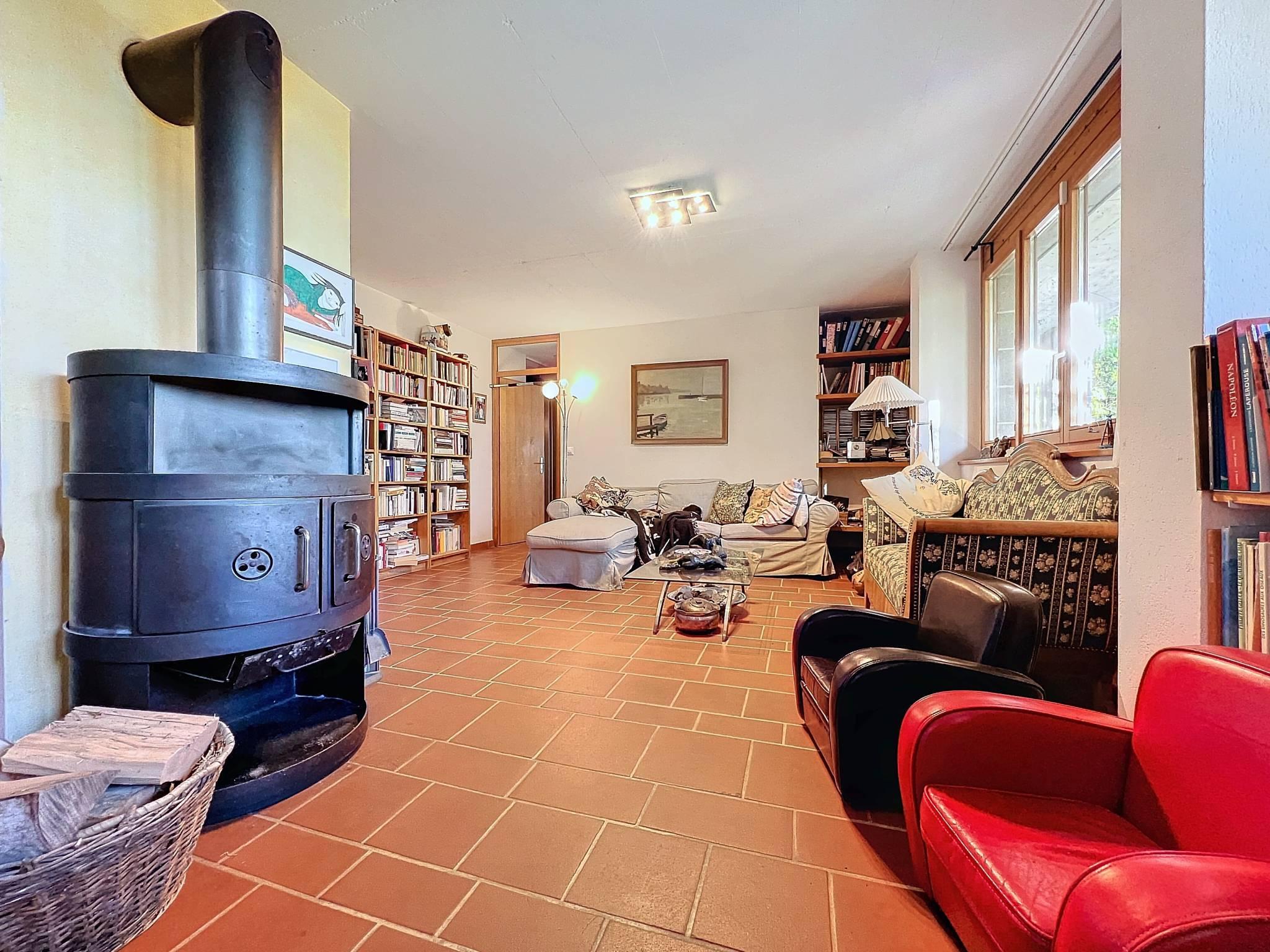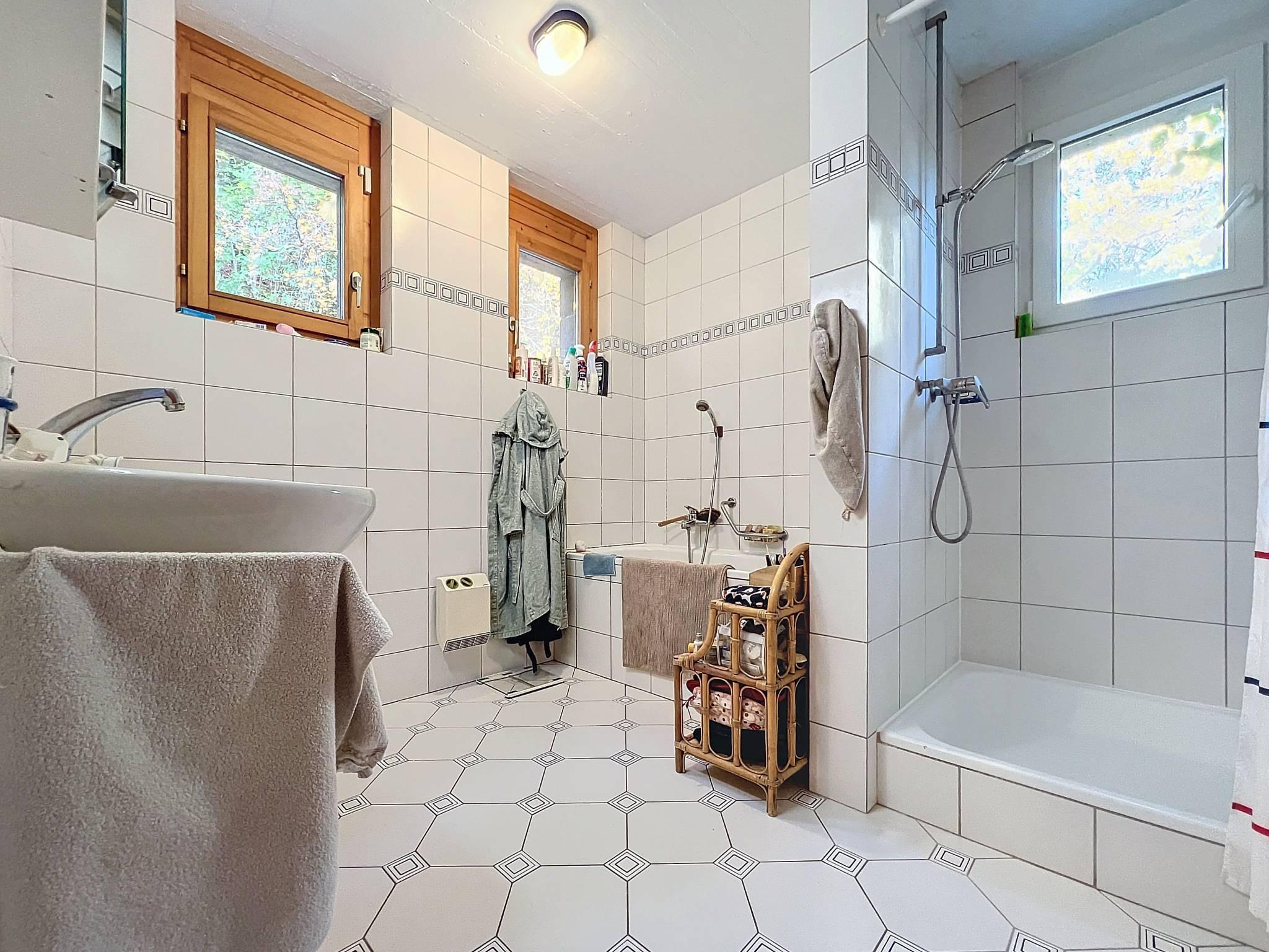 Le rez inférieur offre un appartement de 2,5 pièces avec cuisinette, salle de douche/WC et une chambre, idéal pour un revenu locatif ou pour accueillir famille et amis.