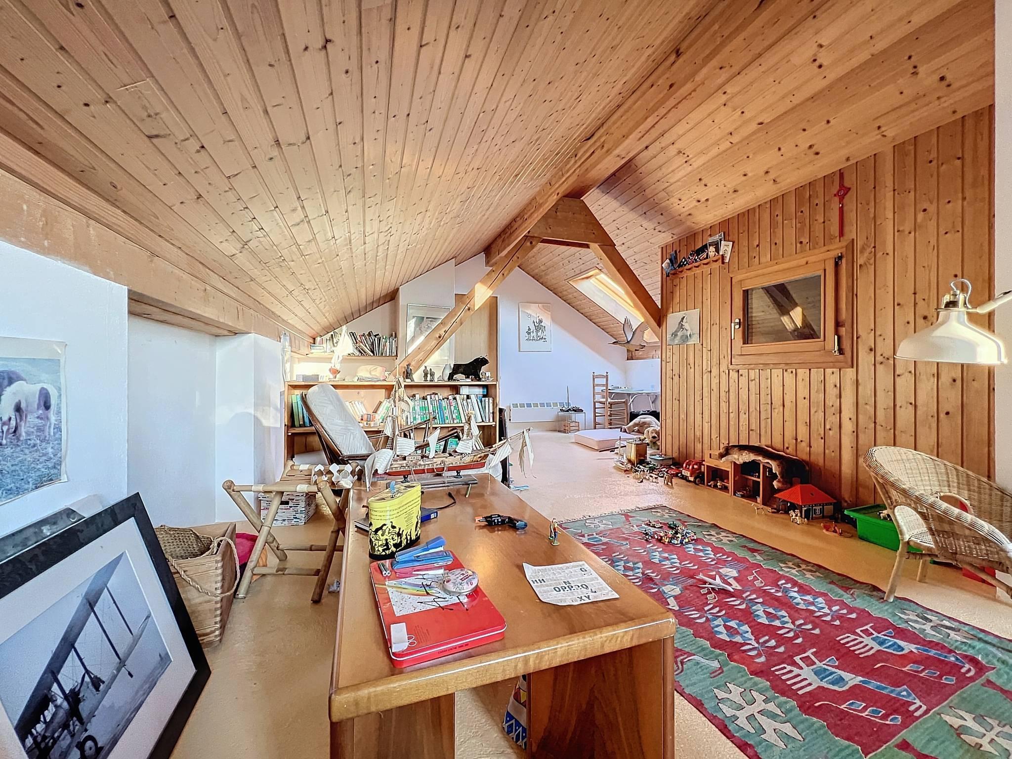 Le dernier étage sous combles accueille une grande chambre et une pièce attenante, idéale pour un bureau, une salle de jeux ou un espace supplémentaire à aménager selon vos besoins.