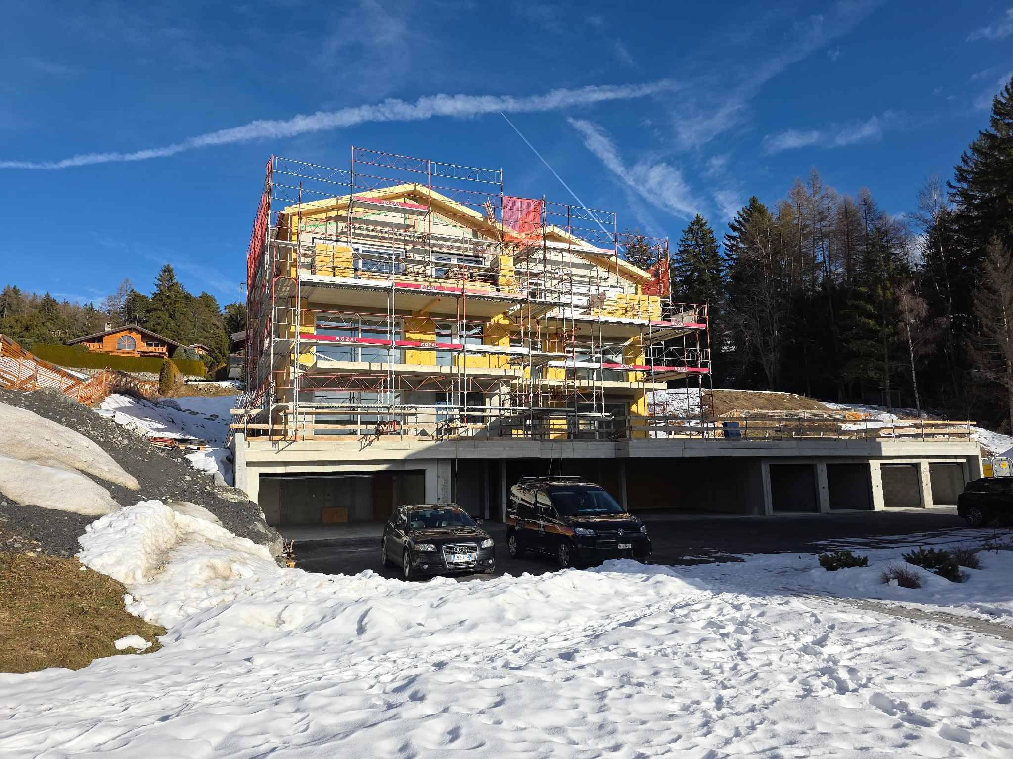 Projet d'un ensemble d'immeubles (5 au total) comprenant 24 appartements. A 5 minutes du village de Lens et 10 minutes de Crans-Montana. Vue sud-ouest magnifique sur la plaine et les montagnes.