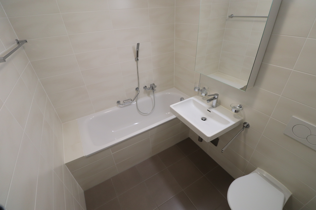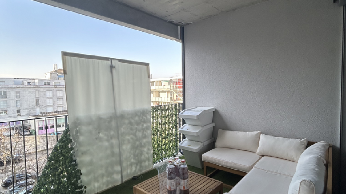 agencée ouverte sur le séjour, salle-de-bains/WC, une chambre, balcon.