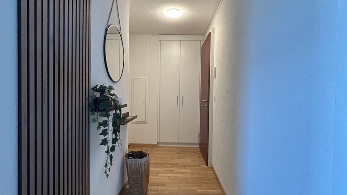 Appartement de 2.5 pièces comprenant hall avec armoire murale, cuisine