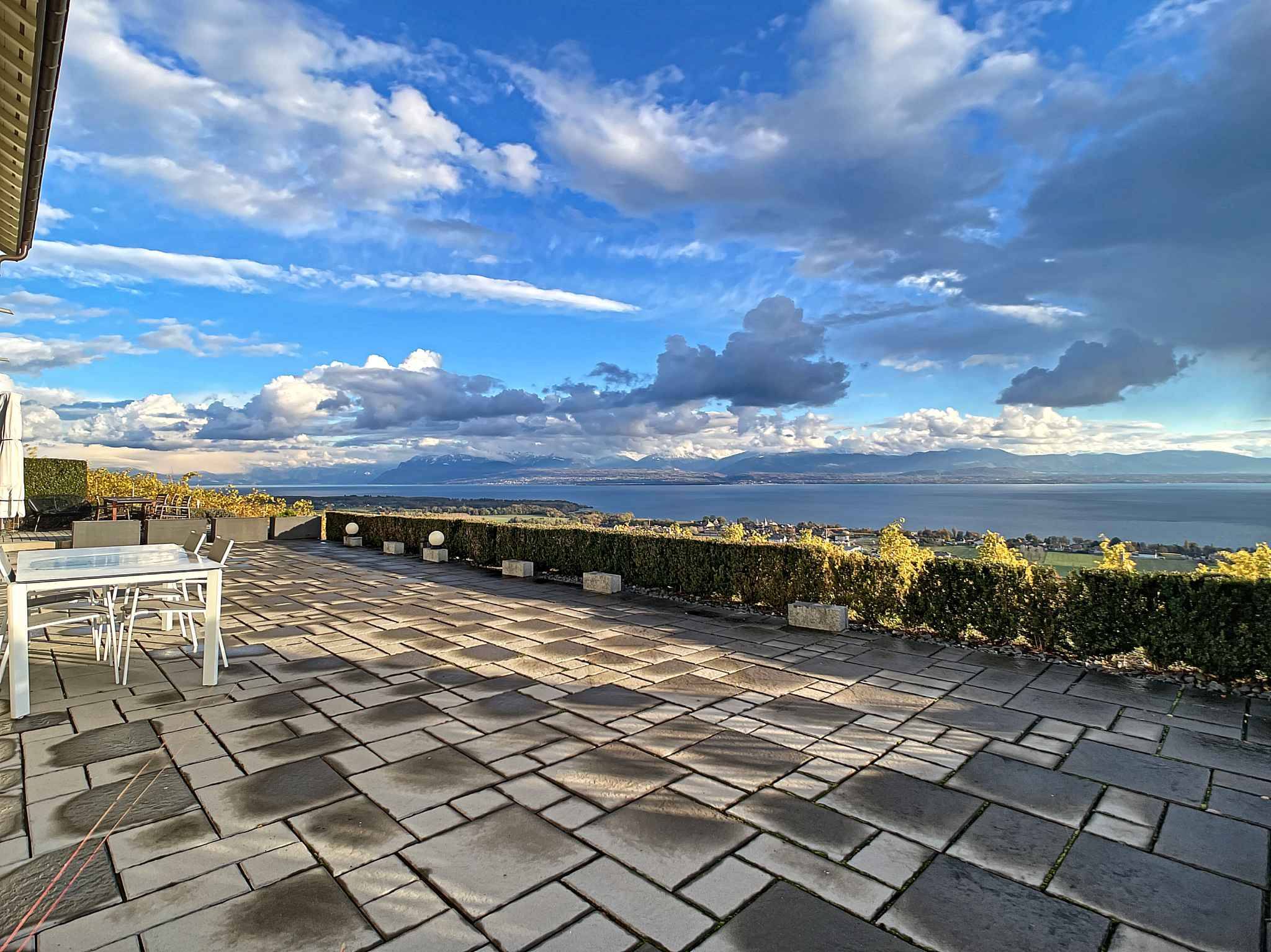 Toutes les pièces ont accès à une spacieuse terrasse orientée plein sud qui offre une vue panoramique sur le lac.